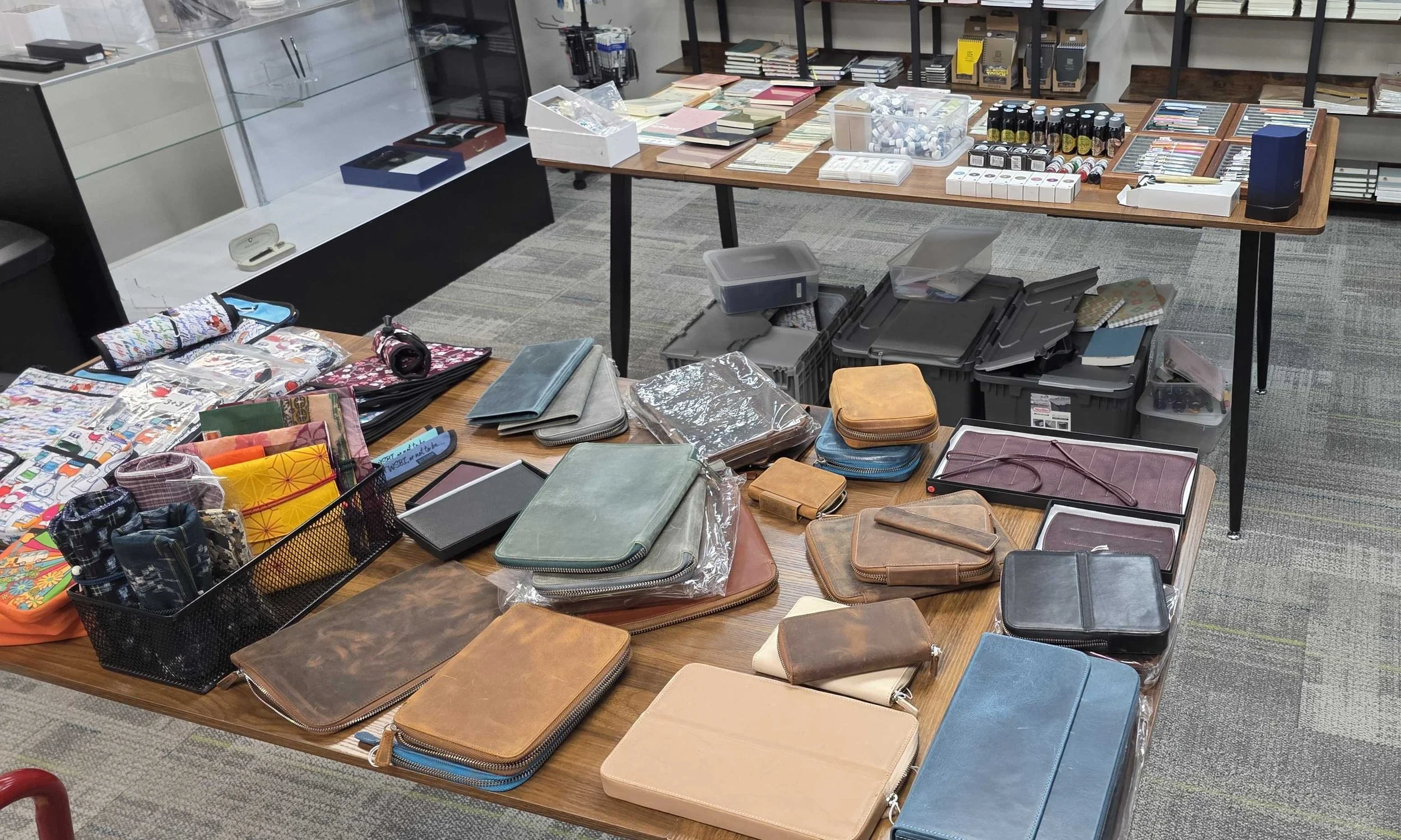 Pre-opening setup with some of the stuff from Vanness, including Rickshaw, Galen Leather, Robert Oster Inks, Nagasawa Pens, and more! There is plenty of stock so if you missed Friday you have all day Saturday from 10-6pm to catch up.