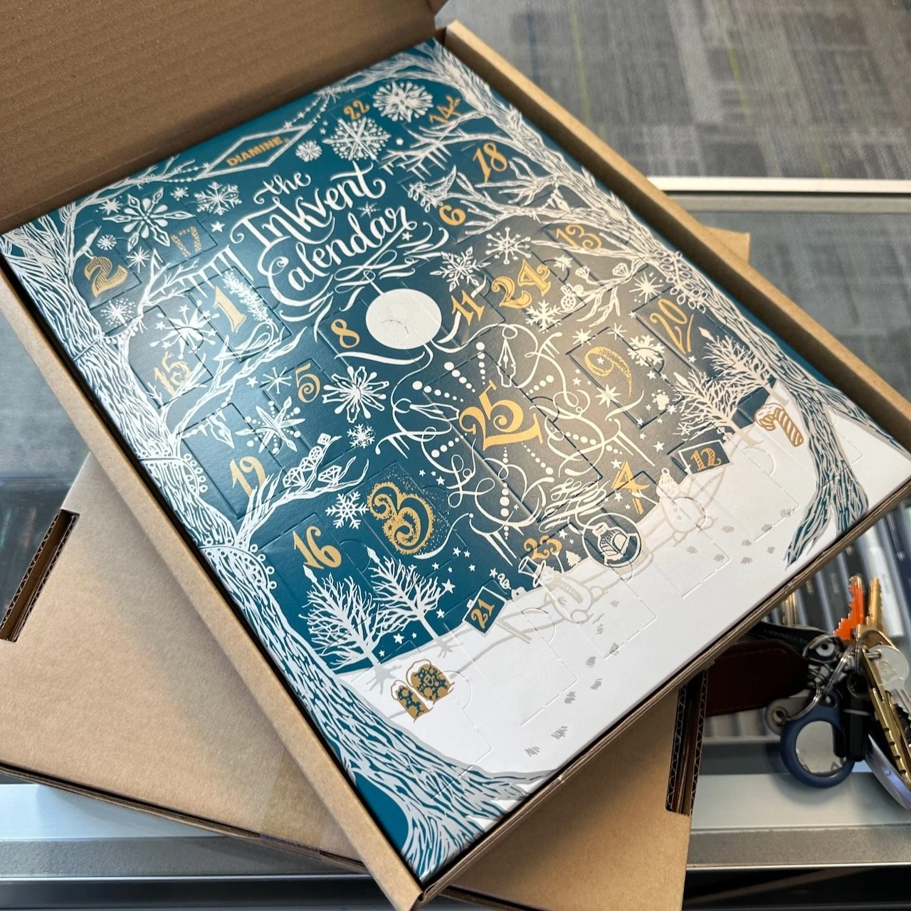 The 2026 Diamine Inkvent Calendars arrived Thursday afternoon, and I was able to swing by to pick them up on our way in to Friday’s event prior to opening. They’re now available both in-store and online, but supply is somewhat limited so please be sure to grab yours while they’re available.
