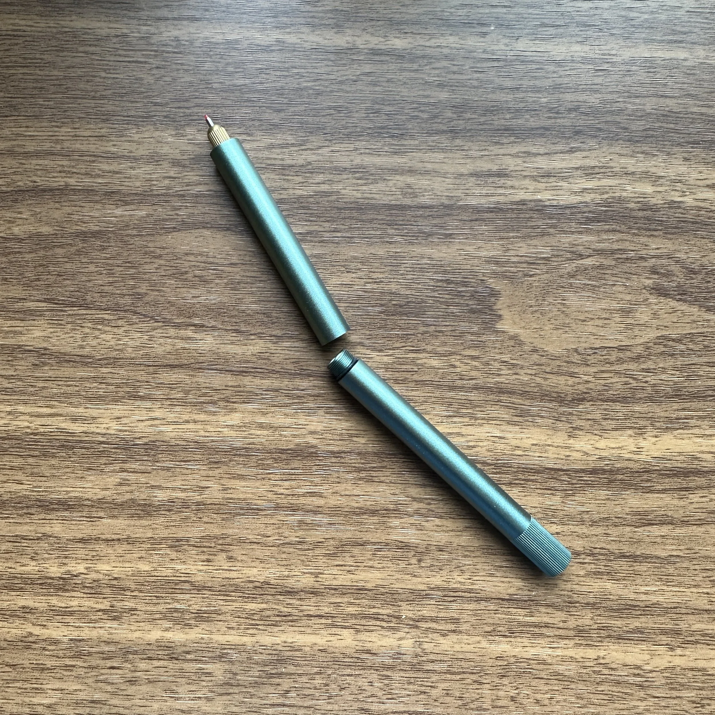 From the moment you open the box, there's no confusing this pen with anything other than a modern Kaweco Sport fountain pen. As mentioned, the body design draws on the existing AL Sport line, though Kaweco has added the integrated clip from the current Art Sport lineup and the now-discontinued “Luxe” model. There's also a gold band at the blind cap, which you remove to access the piston mechanism.