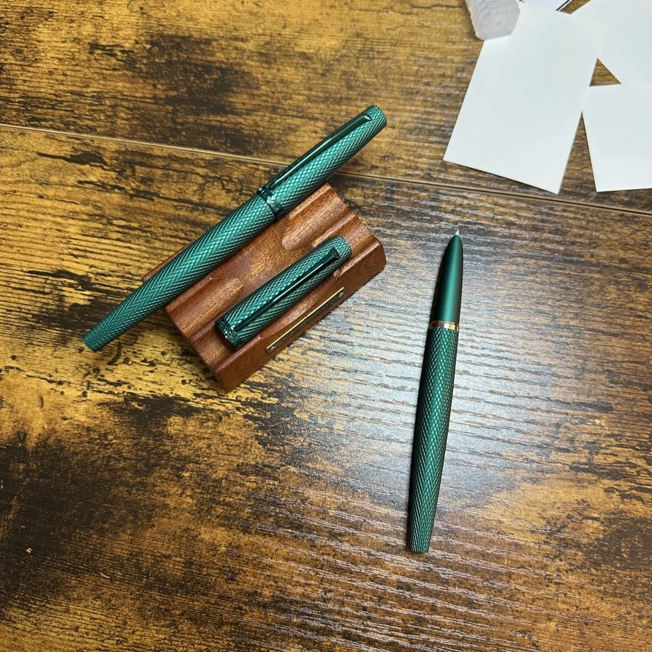 I returned from the San Francisco Pen show to a box of the newly released Green Guilloche Diplomat Viper, which we have in both fountain pen and rollerball formats! For those unfamiliar with this pen, the Diplomat Viper is a hooded-nib fountain pen that features a single nib width (fine/medium) which is perfect for my own everyday writing. While I chose the Blue fountain pen, all of these colors are great.