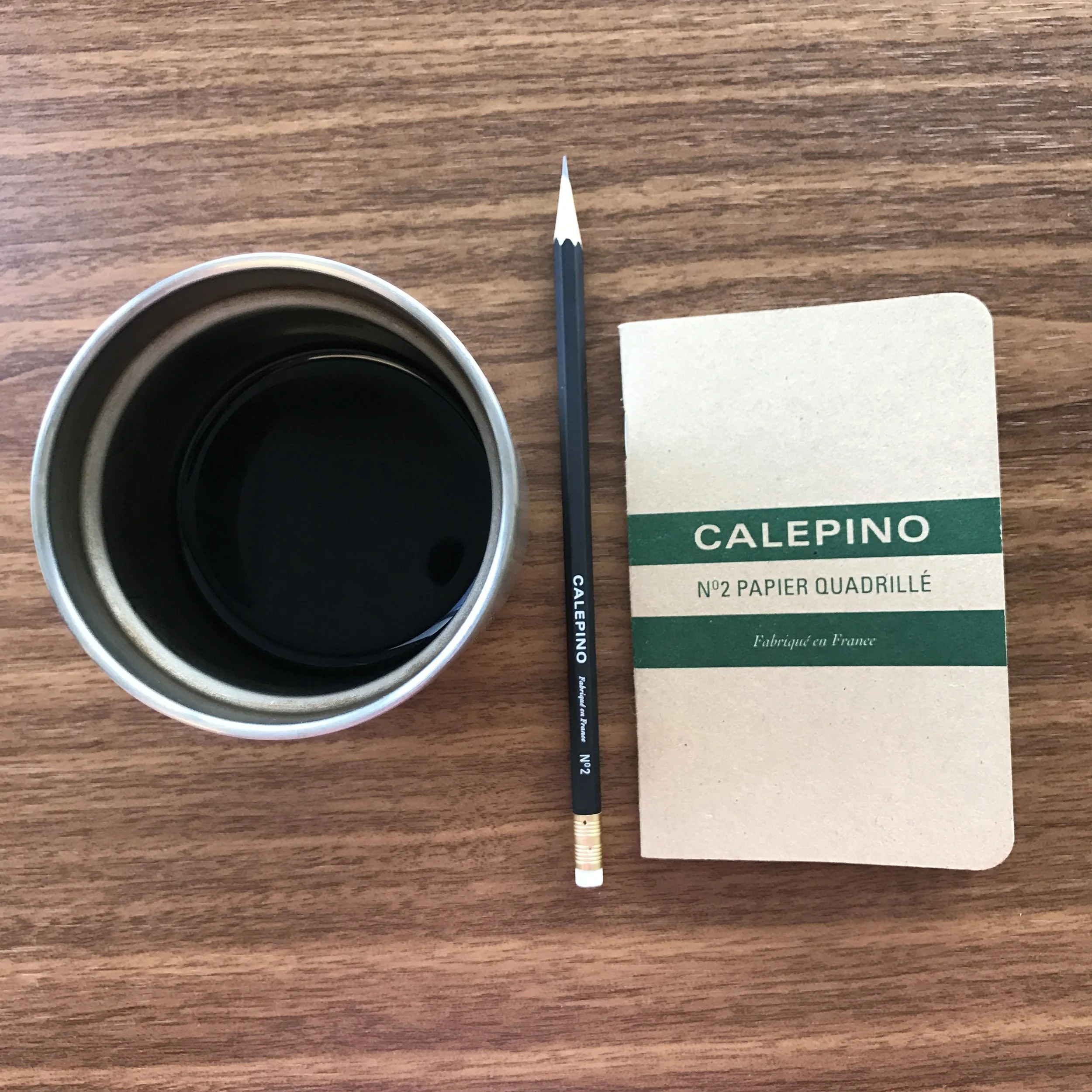 My morning companions: Calepino Graph Paper Notebook and a Calepino Pencil (and Coffee).