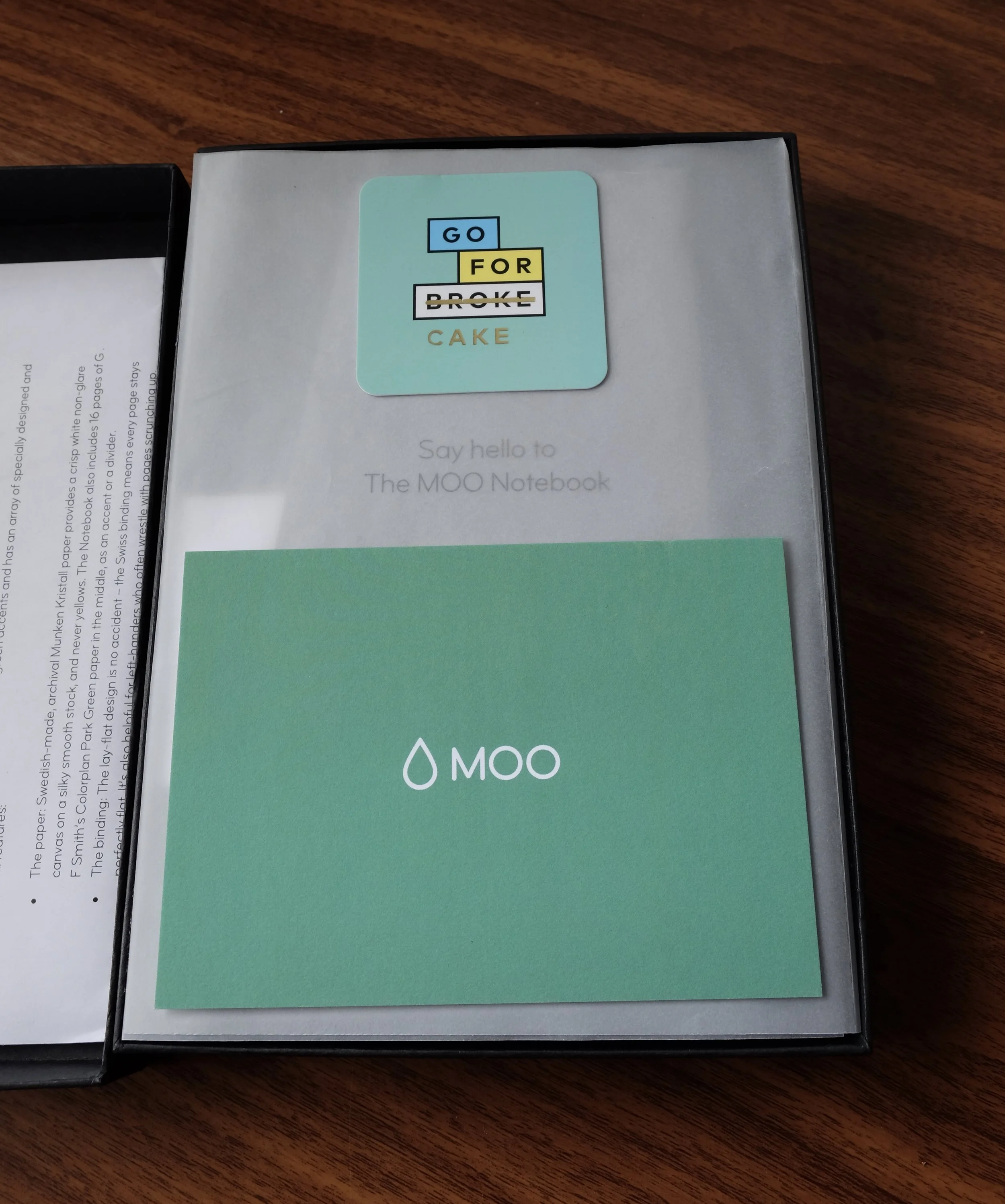 A few samples of additional MOO stationery ship with the notebook.