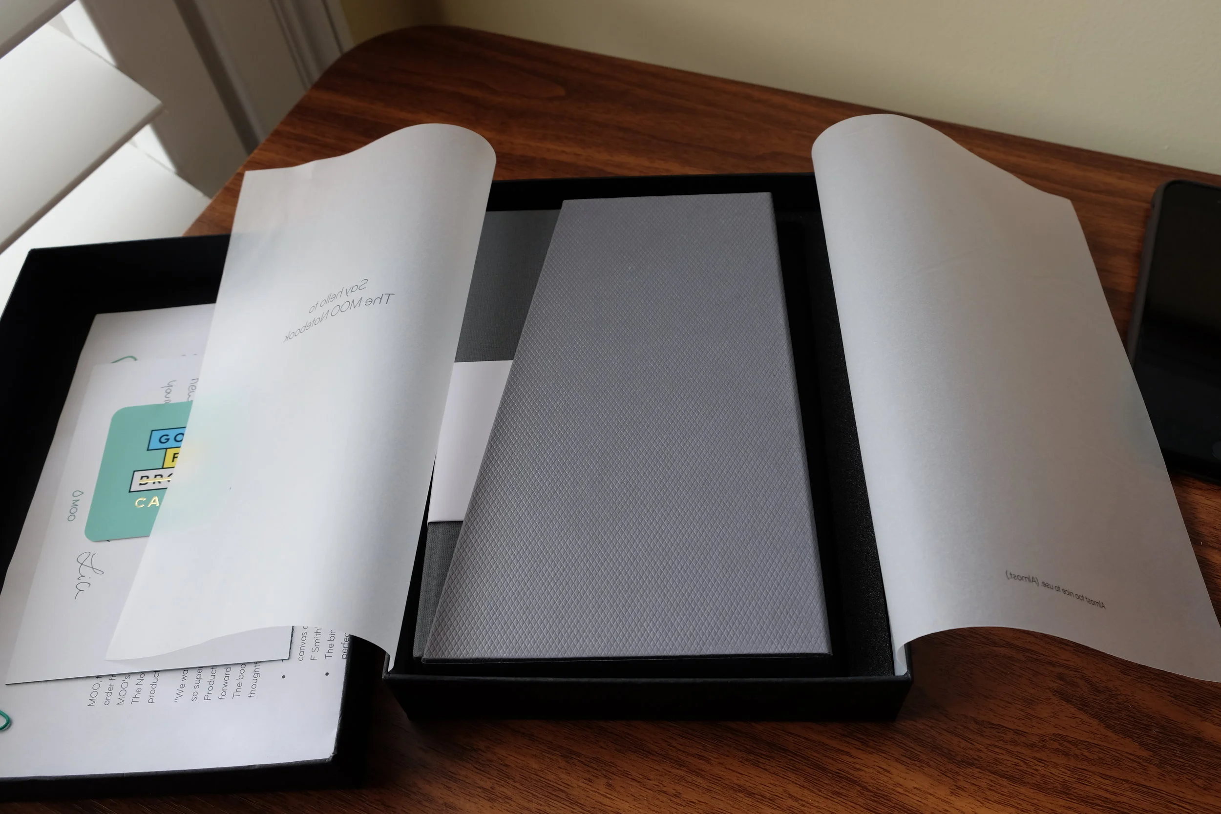 MOO is a stationery company perhaps best known for their high-end business cards and other business stationery. They recently released their first notebook, and were kind enough to offer me one for review. How do I like it? Well, I've already purchased two more (along with a swanky leather business card holder).