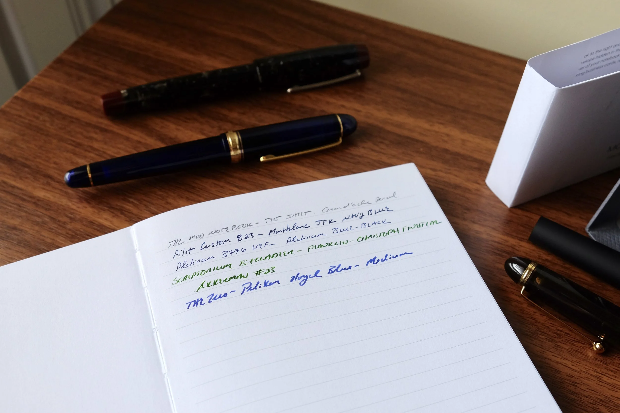 So what about the paper? It's fairly heavy Munken-Kristall (Swedish) ruled paper that is suitable for most pens. None of the pens that I tested bled through, including fine and medium nib fountain pens, though I suspect that if you took a super wet stub or broad nib to this paper you might have a different experience. For the vast majority of people, however, this paper will do just fine. I personally would prefer a narrower ruling (or even graph or dot grid), but I can - and will - use this paper without an issue.