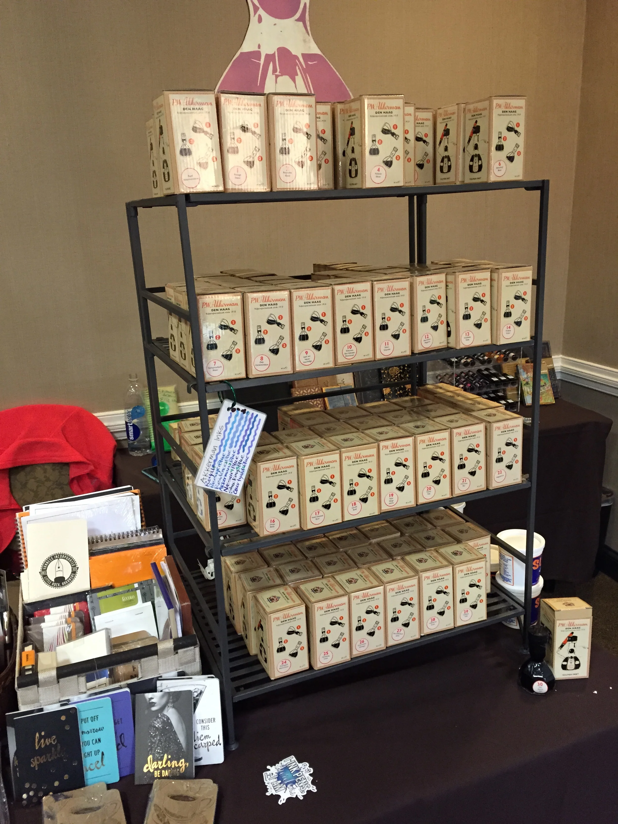 Retailer Vanness Pens always shows up with their "Wall of Akkerman Ink". Pen shows are a great place to pick up ink and save on shipping, if you live close by.