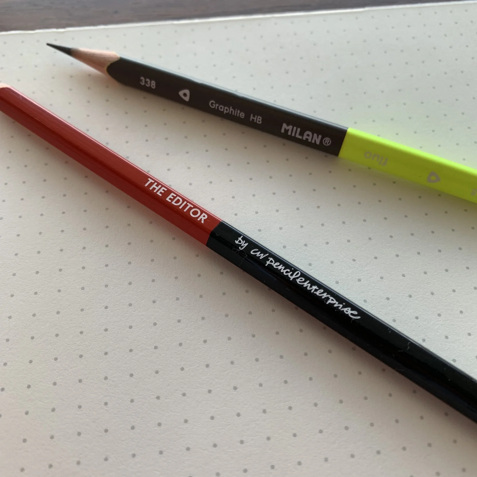 Similarly, so-called double-ended editing pencils combine two different colors of graphite, traditionally blue and red. CW Pencil Enterprise, however, recently released their latest collaboration with Caran d’Ache, “The Editor,” which is a double-ended pencil featuring red and HB graphite - a more convenient combination. I haven’t quite figured out a use case for this pencil yet. I mostly prefer to edit in ink as opposed to red pencil, but Caran d’Ache’s red pigment is excellent and very visible.