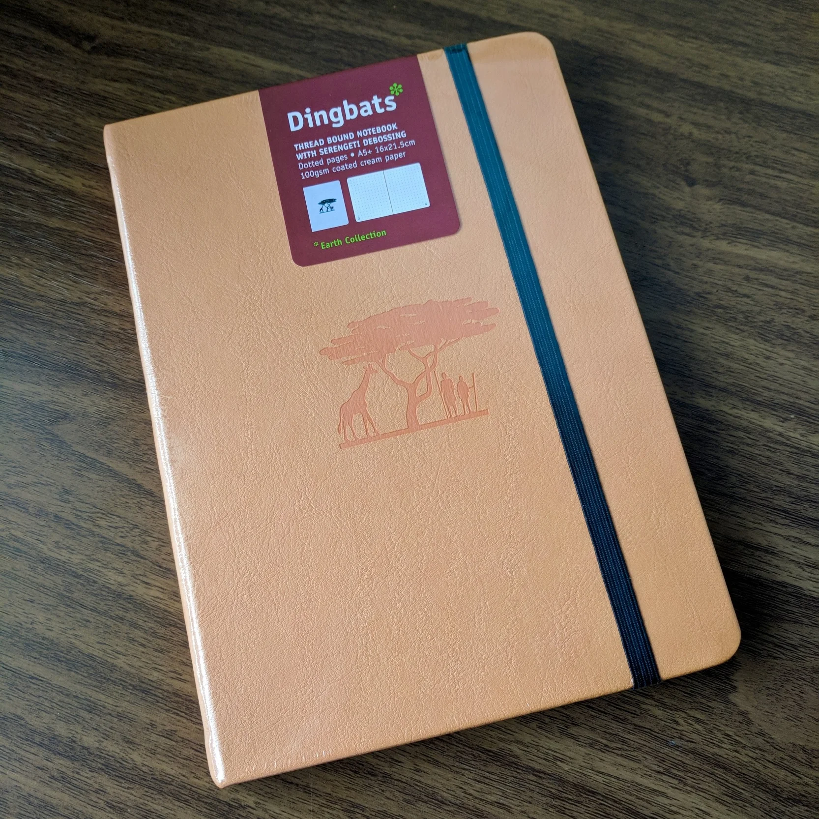 I'm almost finished with the Midori MD A5 that I've been using as my "work notebook"/hybrid bullet journal, and I have this Earth notebook lined up as the replacement. Note that the Dingbats* notebooks are ever-so-slightly larger than standard A5 notebooks, so if you are purchasing to fit a specific notebook cover, be aware that it may not work. For the record, I managed to fit the Earth notebook into my Nock Co. A5 Seed cover, but it was a tight squeeze.