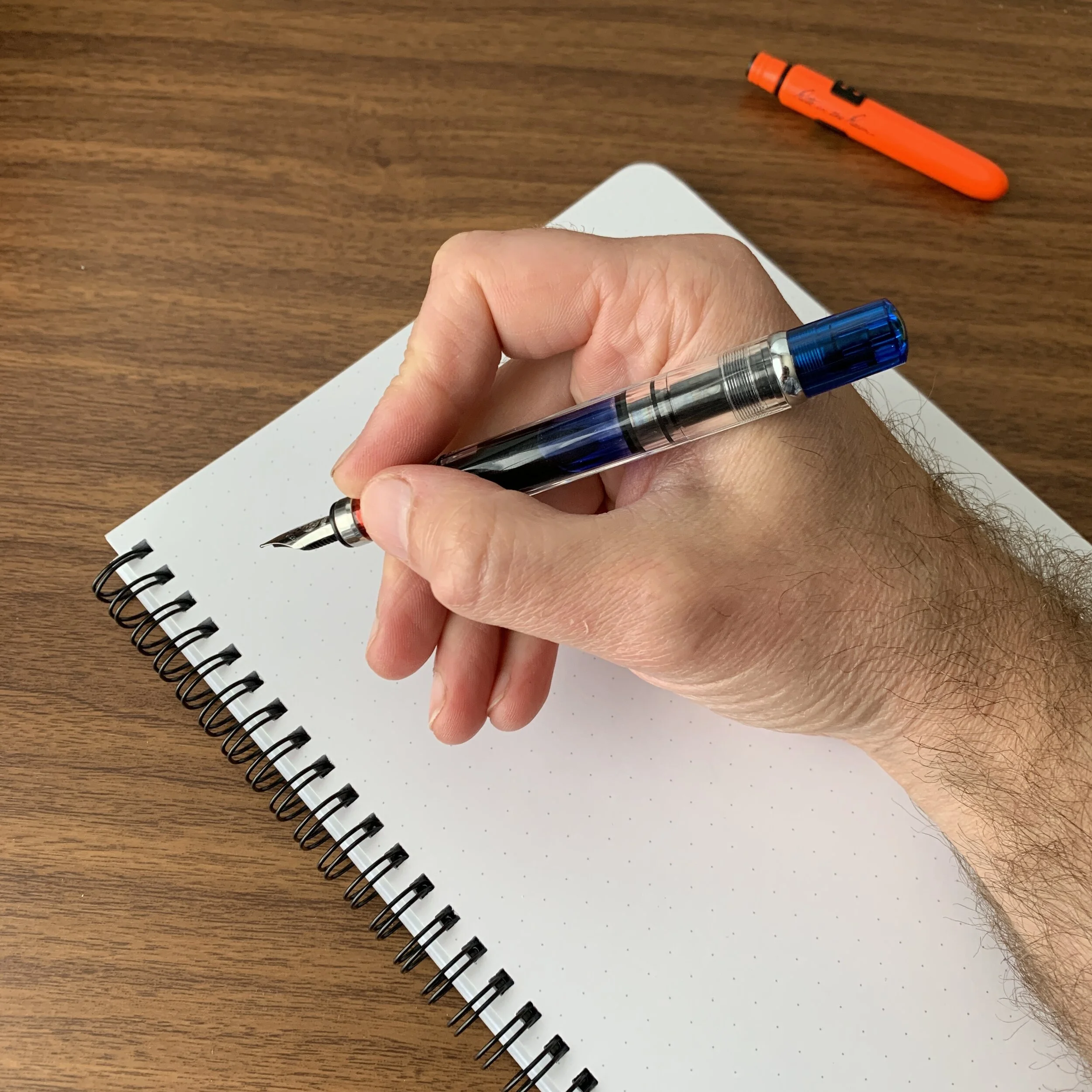 TWSBI nibs write a true medium, shown here with TWSBI Blue-Black Ink in a Write Notepads Dot Grid Notebook.