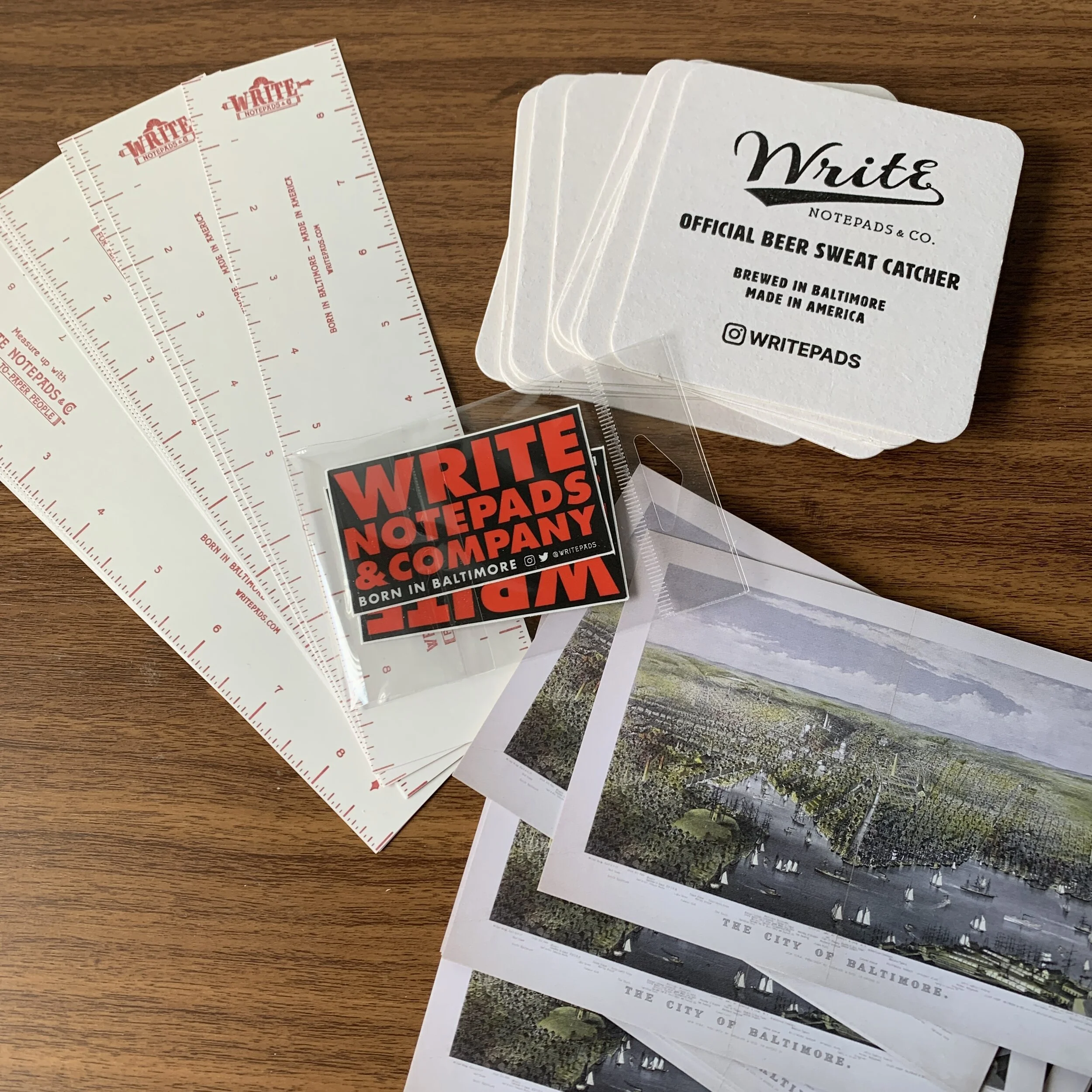 I currently have a handful of these notebooks in Slate (dark gray), and will restock quickly if they sell well. As a “Memorial Day Special,” orders over $50 from the TGS Curated Shop will not only ship free, but will also include a free pack of TGS buttons and stickers as well as one of each of the great Write Notepads freebies pictured below. Promotion is good for today only and while supplies last! Use the coupon code “FREESHIP” at checkout. Many thanks for your support, and enjoy the long weekend!
