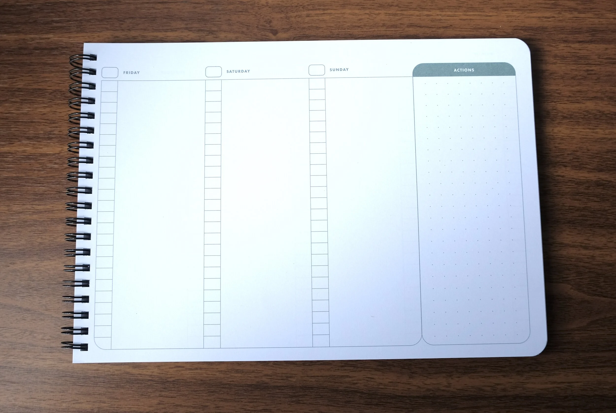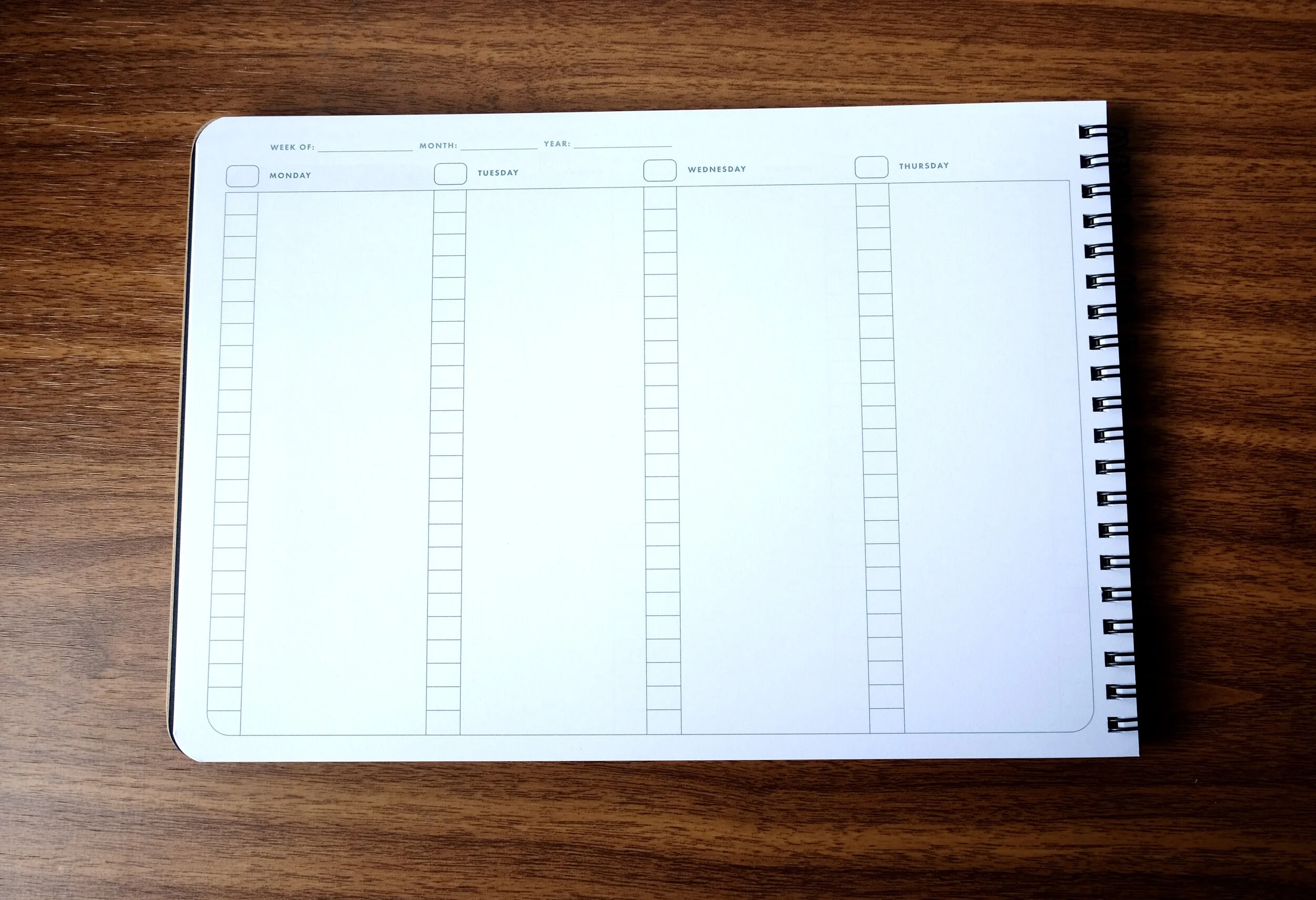For those who desire a little bit of structure to their weekly planning sessions but don’t want to purchase a formal dated planner, consider the Write Notepads Weekly Planner Notebook. This spiral bound notebook features 60 weeks’ worth of versatile, fountain-pen friendly paper in a week-on-two-pages format. Since the planner is undated, it makes for a flexible tool that you can use weekly or simply as needed. If you don’t plan out every week, this notebook may last you much more than a year. The layout also includes full days for Saturday and Sunday for those who work a non-traditional schedule or otherwise like to schedule out their weekends.