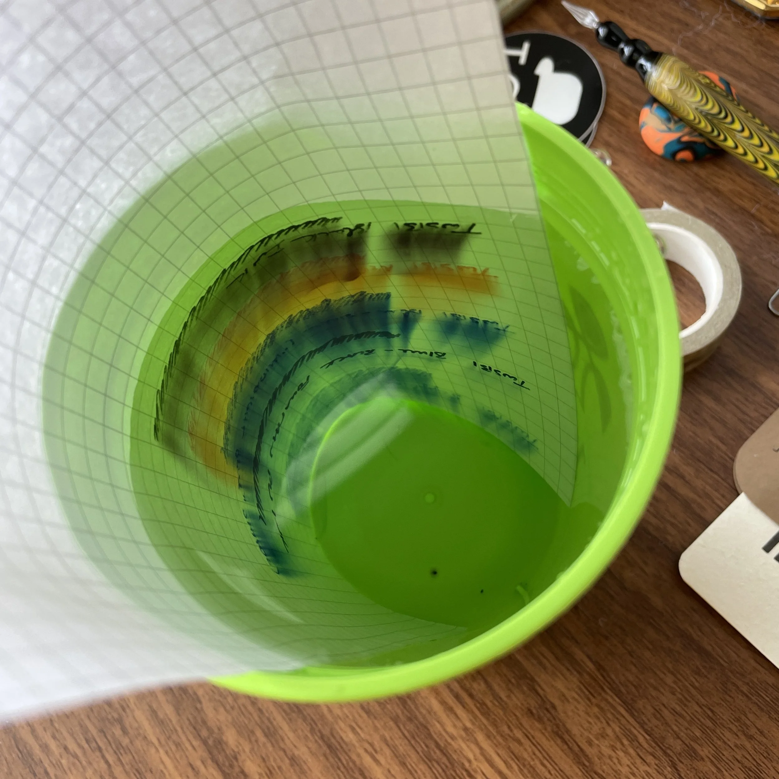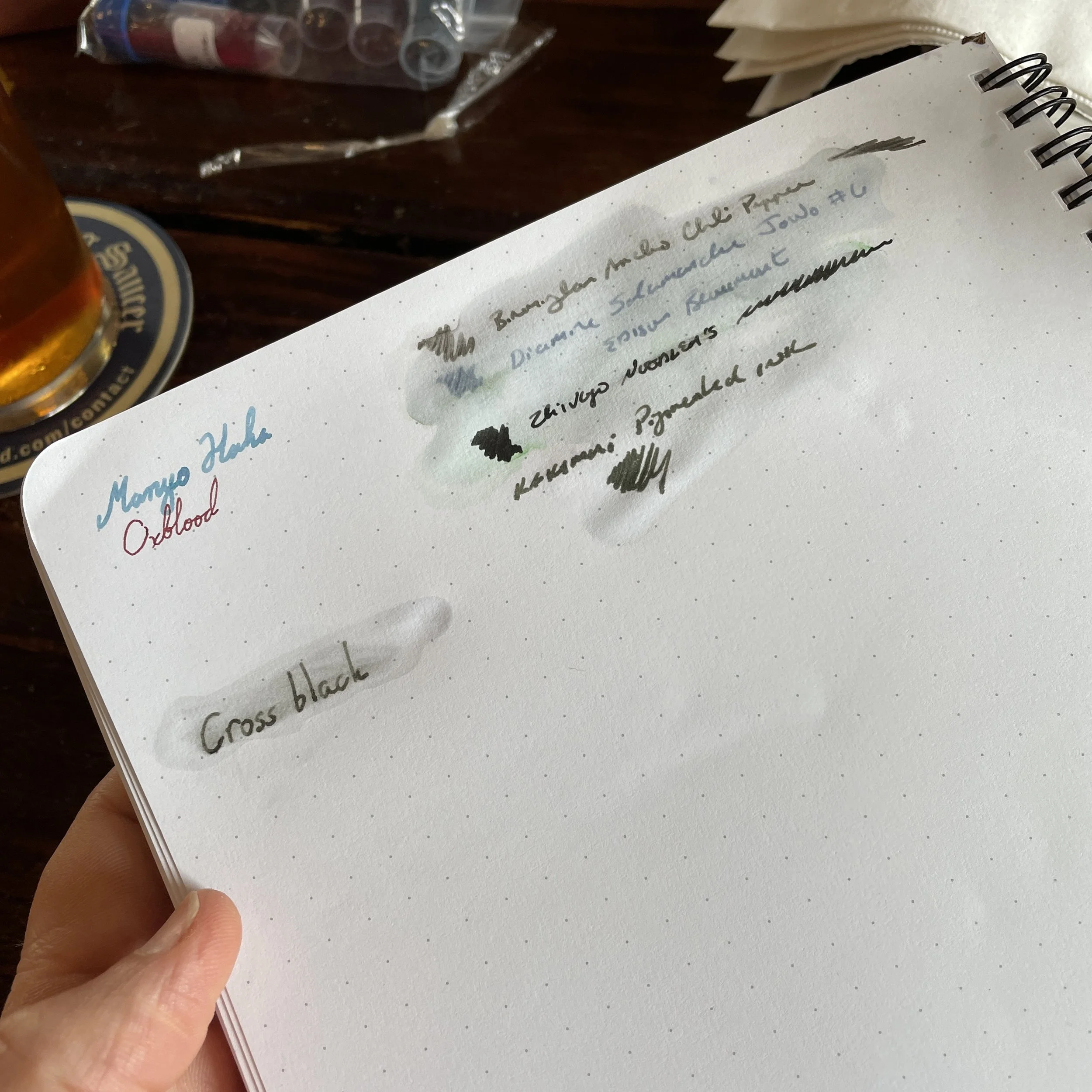 The results from water testing at pen club. Paper used in this test is Write Notepads Dot Grid Paper.