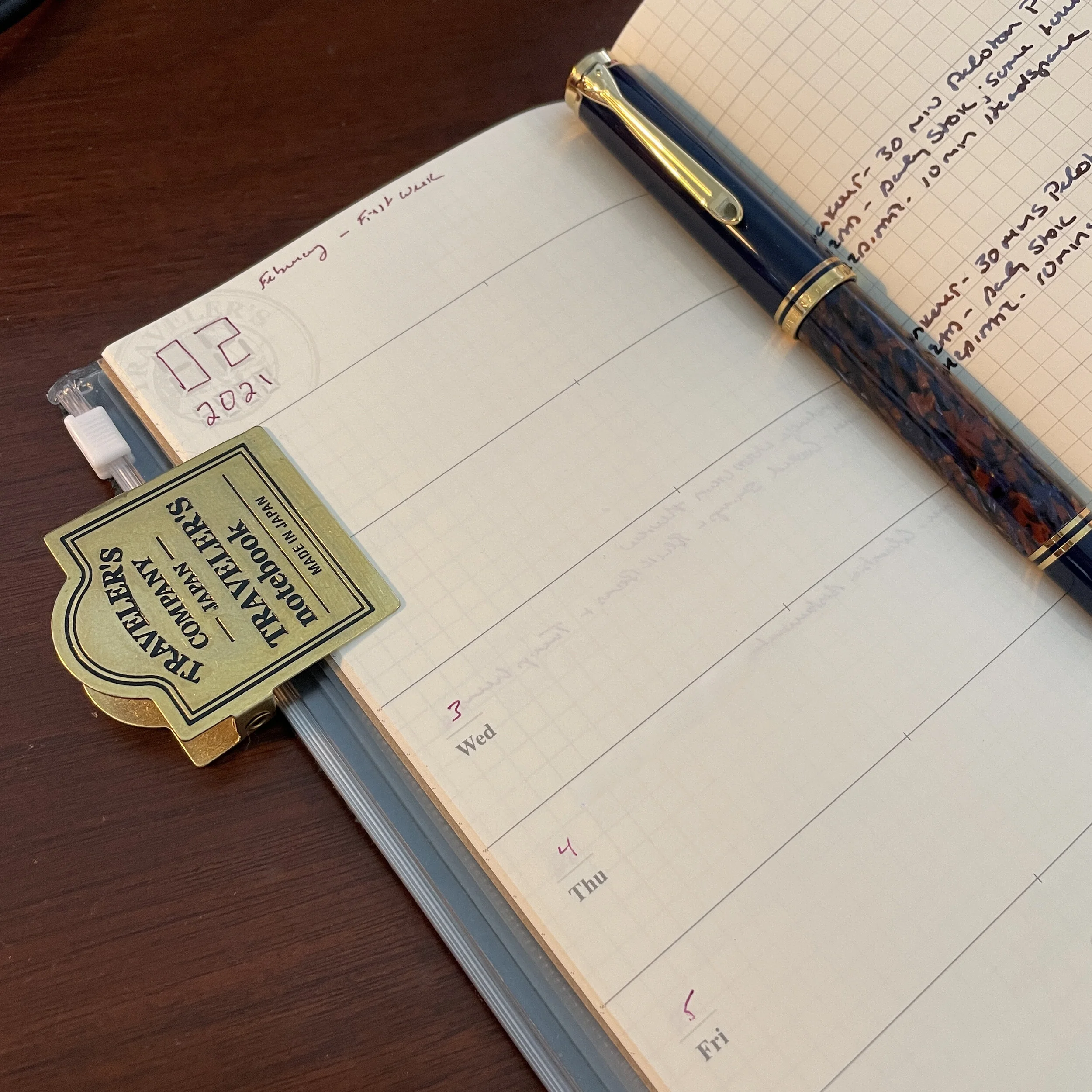 Traveler’s Company Brass Clip. I’ll admit, before I started carrying Traveler’s Company products in the shop, I wasn’t familiar with their clips and how they are intended to be used. In addition to securing papers, etc. to the front cover of your notebook, you can use the weight of the clip to hold the notebook open as you write, offering more of a lie-flat writing experience.