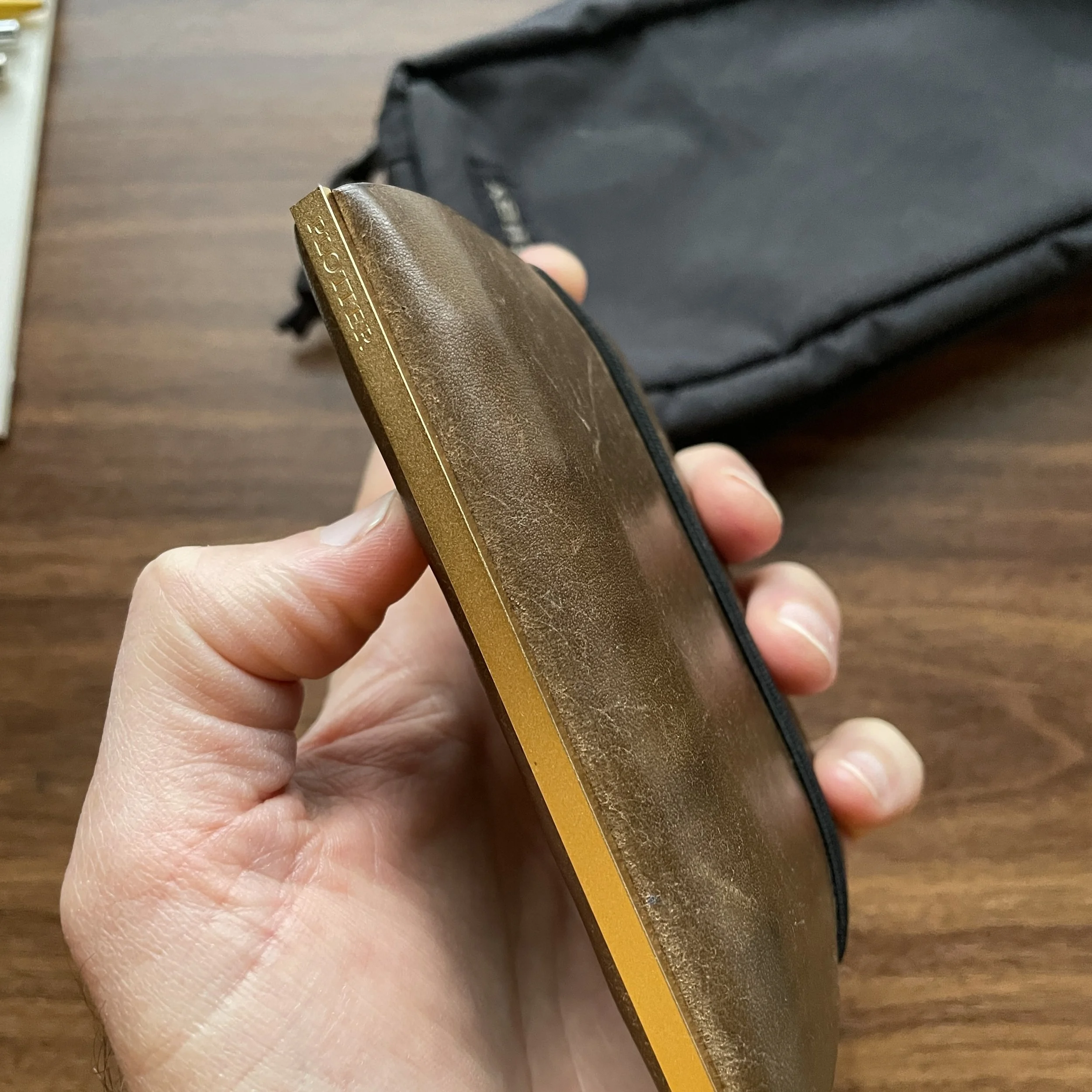 Galen Leather “Magnum Opus” 12-Pen Cases. One of my favorite acquisitions from 2021 was the natural leather “Magnum Opus” 12-pen case with the magnetic closure, and this year I picked up a dark grey zippered version at the D.C. Pen Show. Since I’m a regular attendee at both pen shows and meetings of my local pen club, I’ve been carrying at least one of these two large pen cases to meetups on a weekly basis, as they are a very secure (yet attractive!) way to move multiple pens.