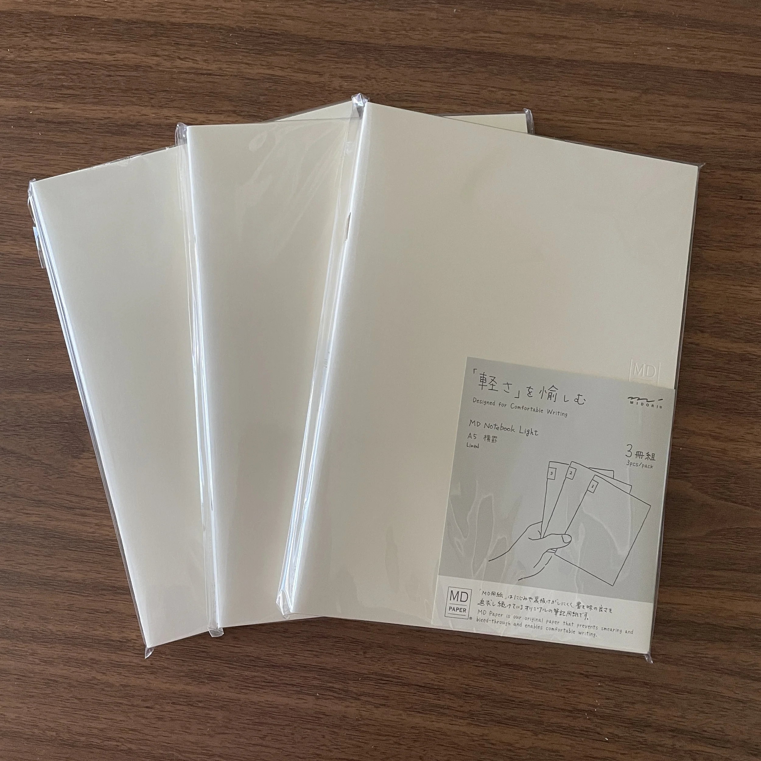 Last week we released the limited edition Midori 70th Anniversary set of the Midori MD Light Notebooks, but we are now happy to announce that we have stocked the whole line, in three different sizes: A5, A6, and B6 Slim. The Midori MD Notebook Light lineup is sold in packs of three 24 sheet/48 page notebooks, in three rulings grid, lined, and blank. These are perfect for refilling notebook covers and systems that accept thinner refills, such as the Lochby Field Journal, and they are light enough so that you can fit two volumes in a standard Midori Cover.