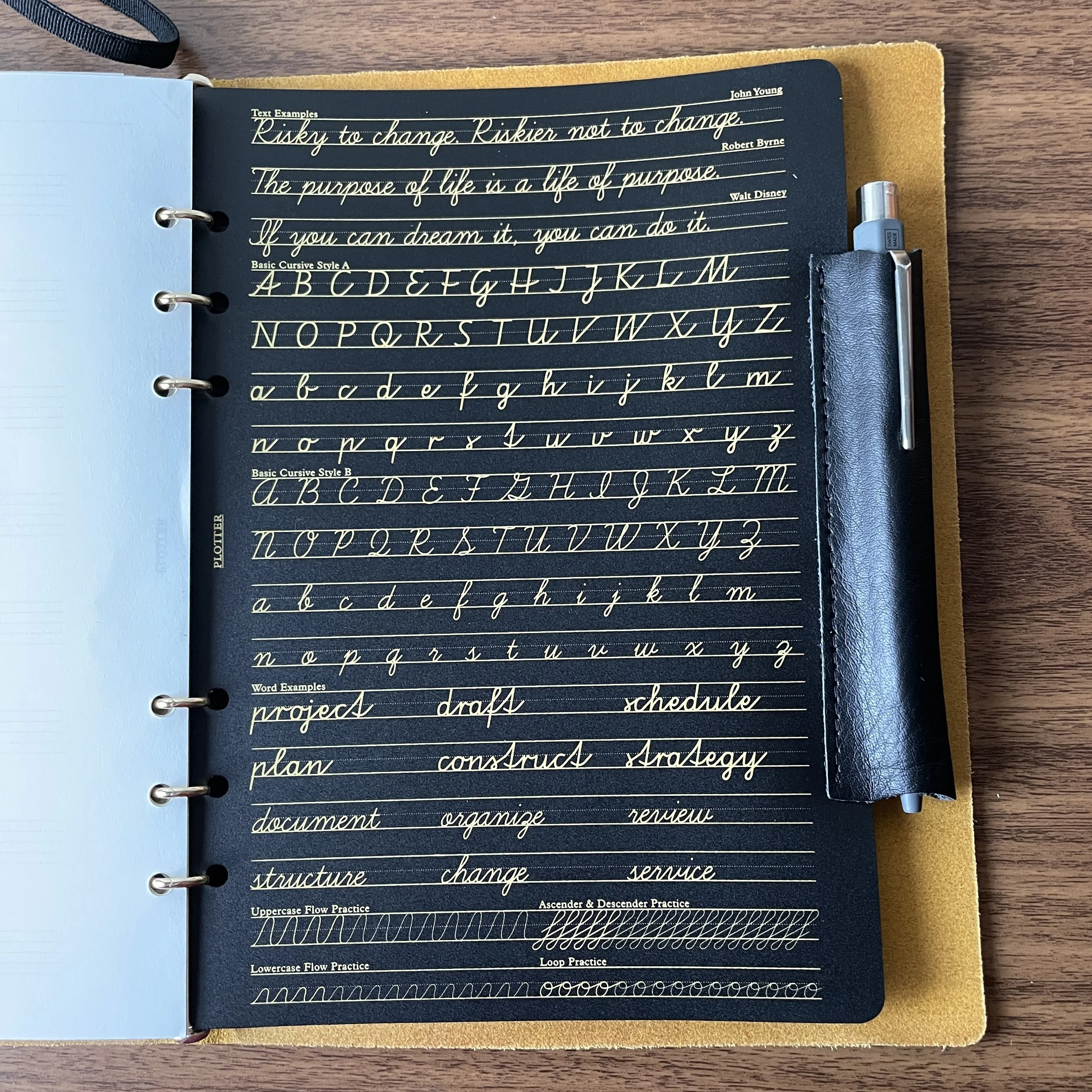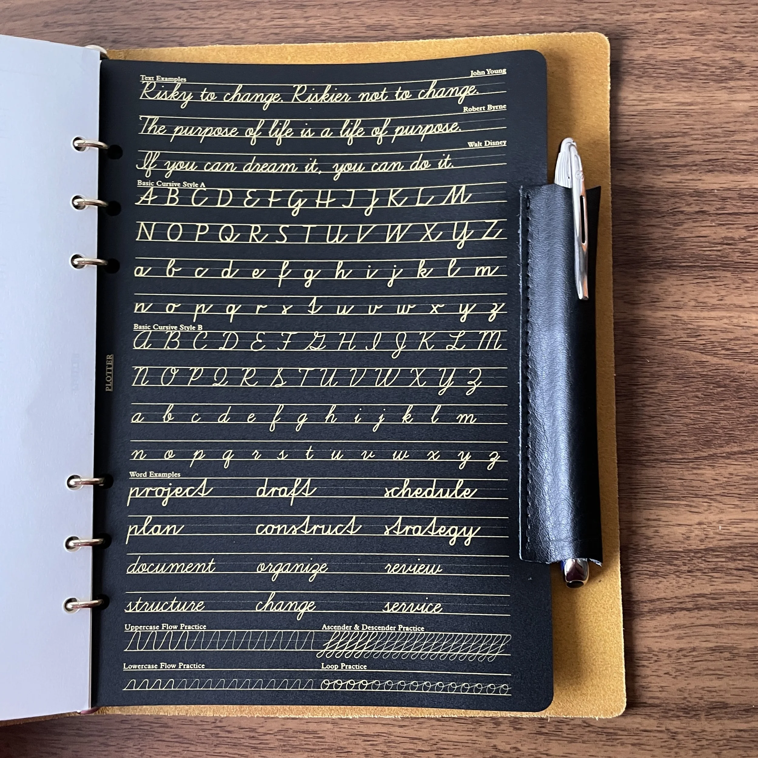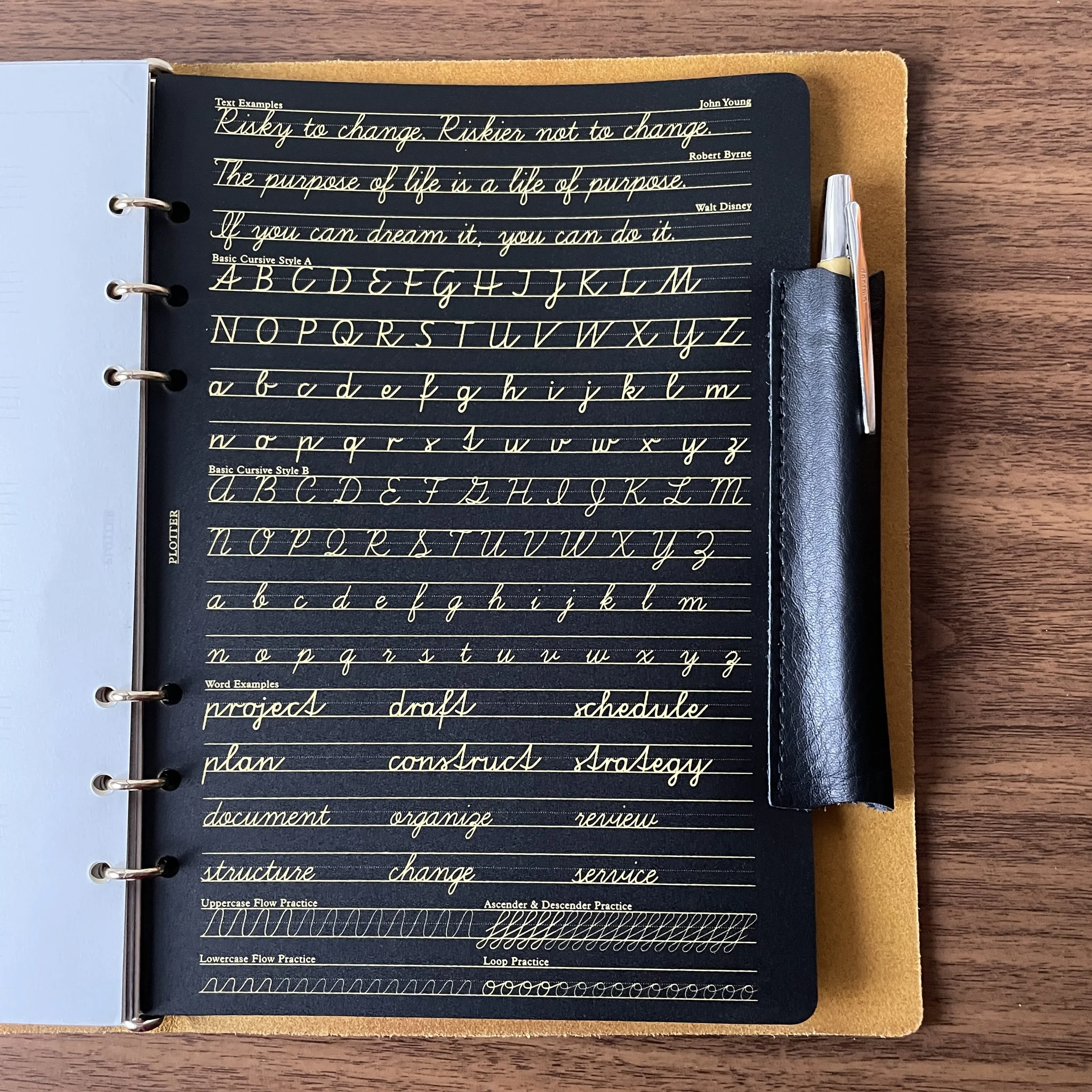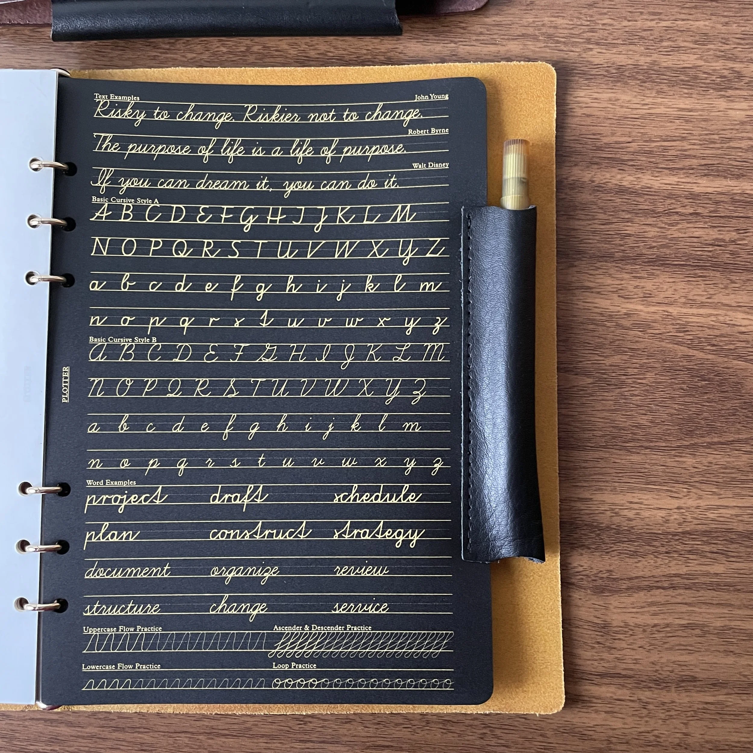 Before we get started with pen comparisons, I need to do an overview of how Plotter works from a setup perspective. One of the key features of the Plotter system (which is either a benefit or a drawback, depending on how you like to purchase your planners), is that Plotter is completely customizable, meaning that you purchase the cover, refills, and all desired accessories separately to create the notebook that works for you. While the Plotter system does not ship with a pen loop, you can add one by purchasing the “Leather Penholder with Lifter” accessory refill specific to your size leather binder.