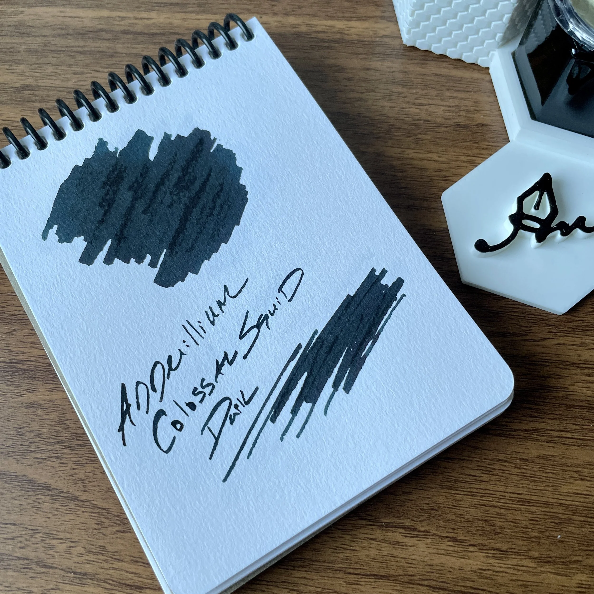 One reason I brought Anderillium into the store is my appreciation for inks that not only have a consistent theme but interesting muted color palettes. “Colossal Squid Dark” is a great blue-green-teal-black.