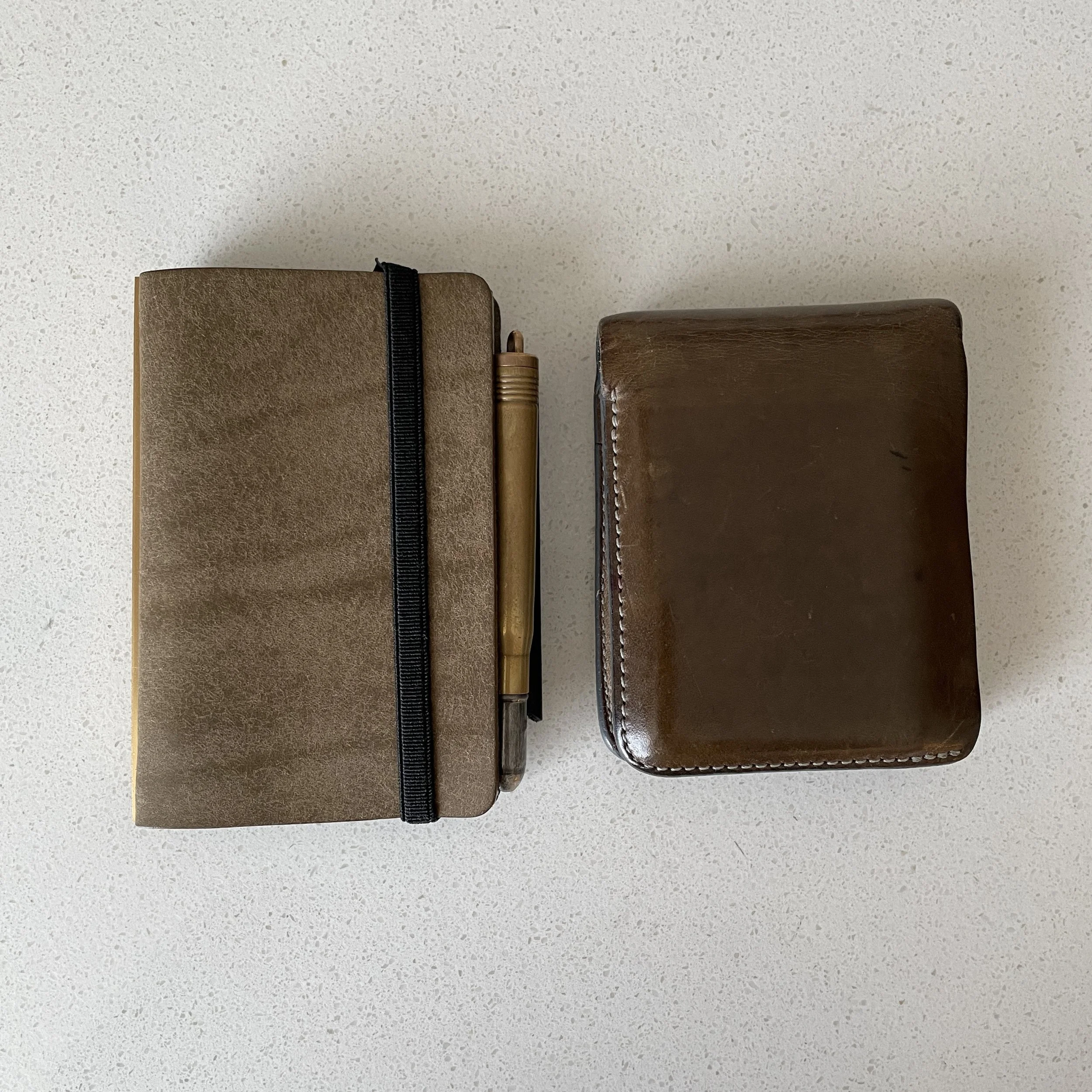 My Plotter Mini-5 in grey Pueblo leather has replaced my wallet since approximately an hour after I bought it. If you intend to use it as a wallet, you’ll need at least one of the cardholder accessories. The pen loop is also an add-on, if you want to carry a pocket pen. (The one shown here is a Penco “Perfection” Bullet pen - back in stock in the shop!)