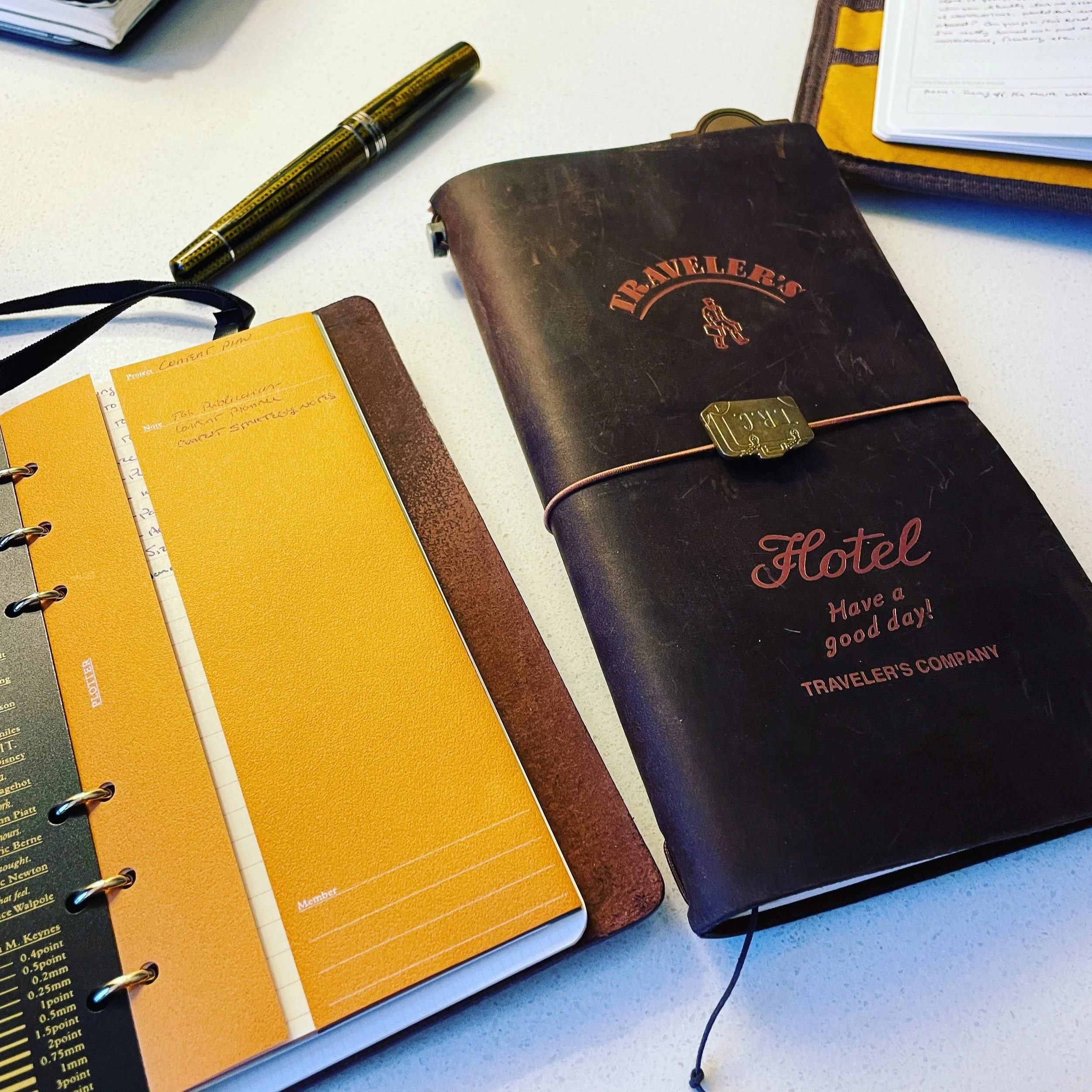 My yellow Plotter A5 - I’m not sure what this leather is called, or whether it will be generally available, but it’s gorgeous and about as close to my beloved natural undyed leather as you can currently get in the Plotter lineup. This one will age beautifully. I intend for this notebook to serve as a general purpose creative and idea inbox - a place to sketch out ideas before moving them into storage or figuring out where they will permanently live.