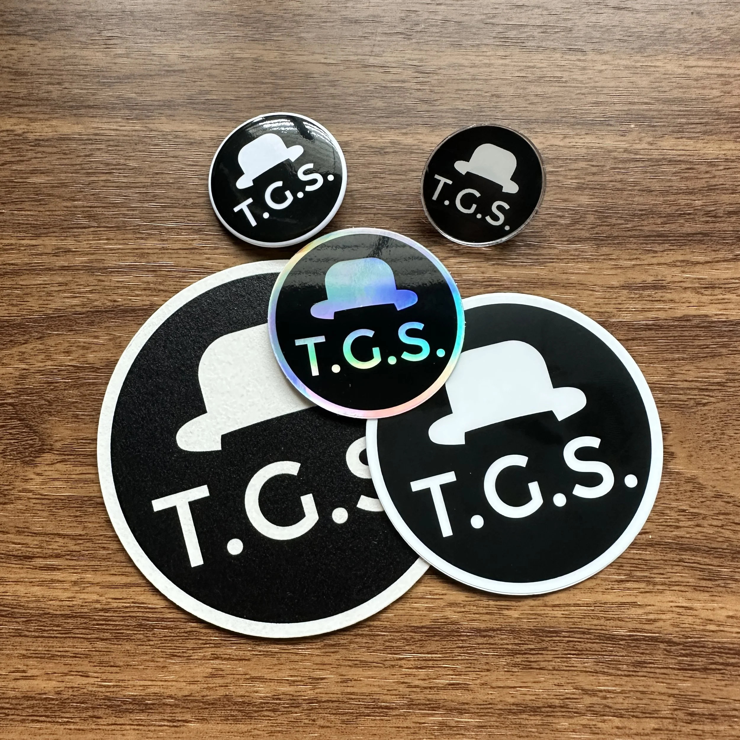 New T.G.S. Stickers and Pins Are Available, and Details on Our October Promotion!