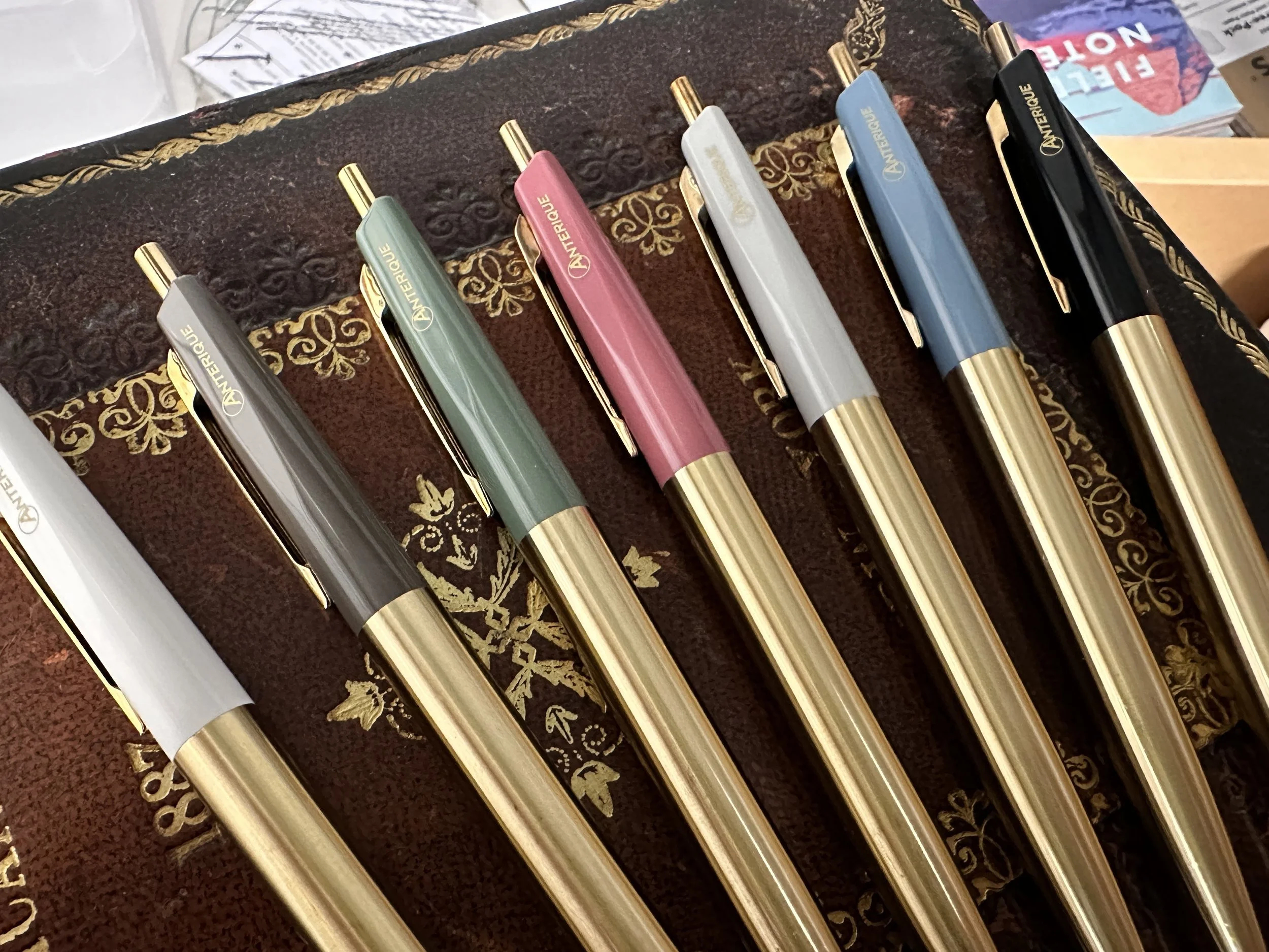 We are now fully restocked on the Anterique Brass Ballpoints, including two new colors! (Keep in mind that the top portions are interchangeable with the standard Anterique Pens, allowing you to mix and match to create pretty much any brass + color combination you like.)