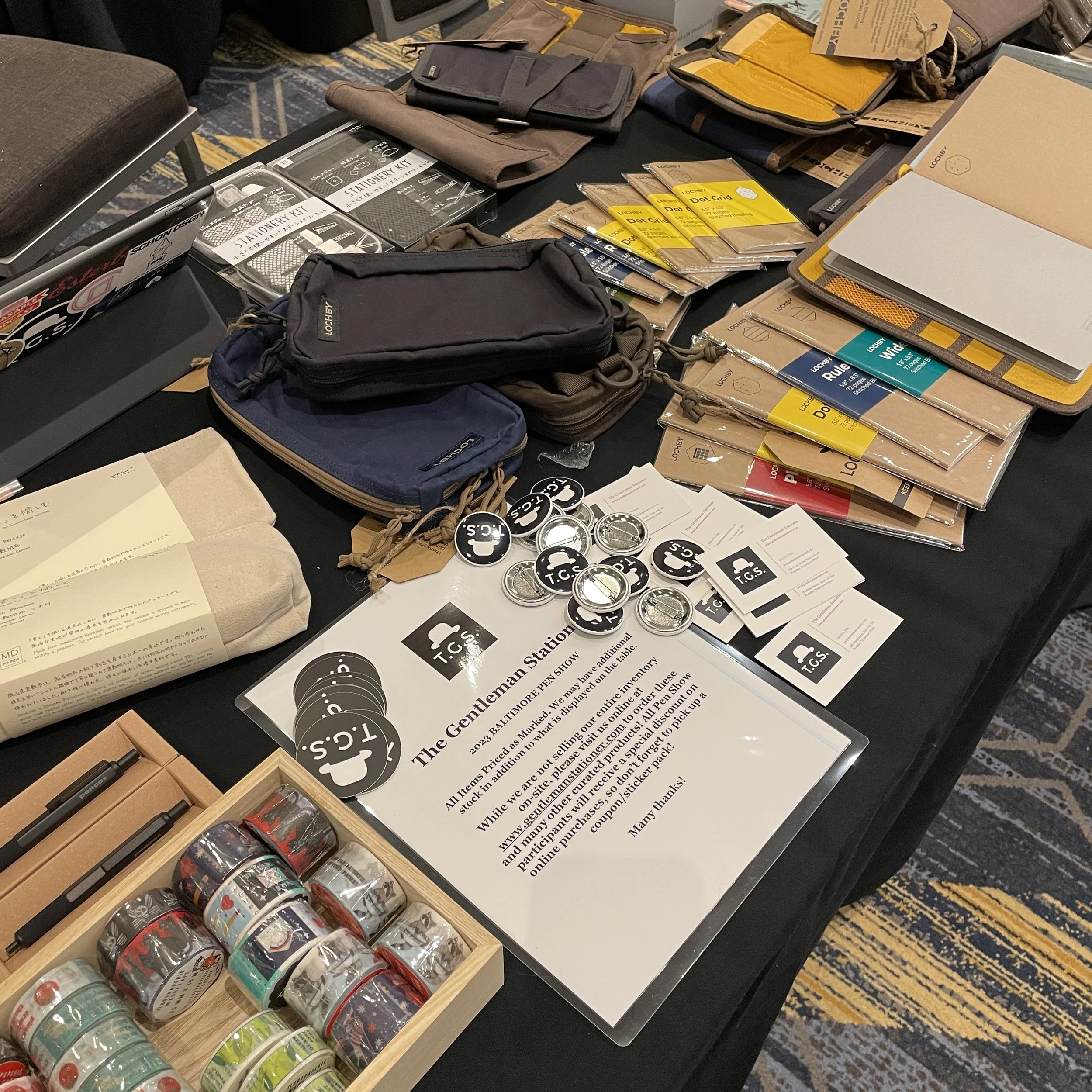 Though some items are marked as “out of stock” online because they went with me to the Baltimore table, most goods are still available, and right before I left we received a restock of Midori MD Paper and Travelers Company notebooks. For those of you here in Baltimore, you have one day left (10-4 today!) to visit us in person and pick yourself up a Lochby Field Journal, Case, or build your Traveler’s Notebook! Also, through Wednesday (when I return) take 10% off your order using the coupon code PENSHOW10 at checkout.