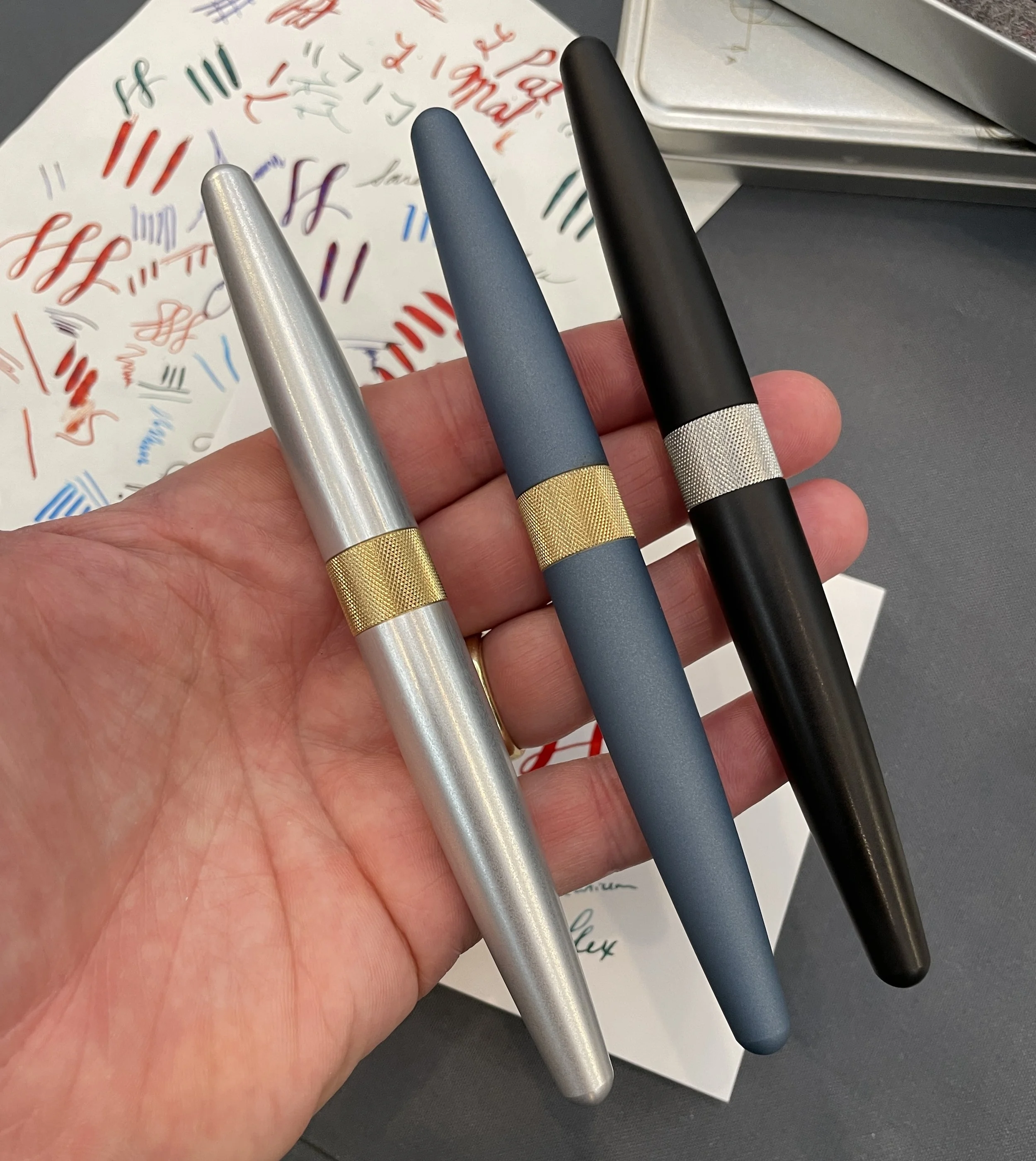 Vanness Pens brought pens from The Good Blue Company, including their limited edition blue Cerakote collaboration (center). One of these came home with me.