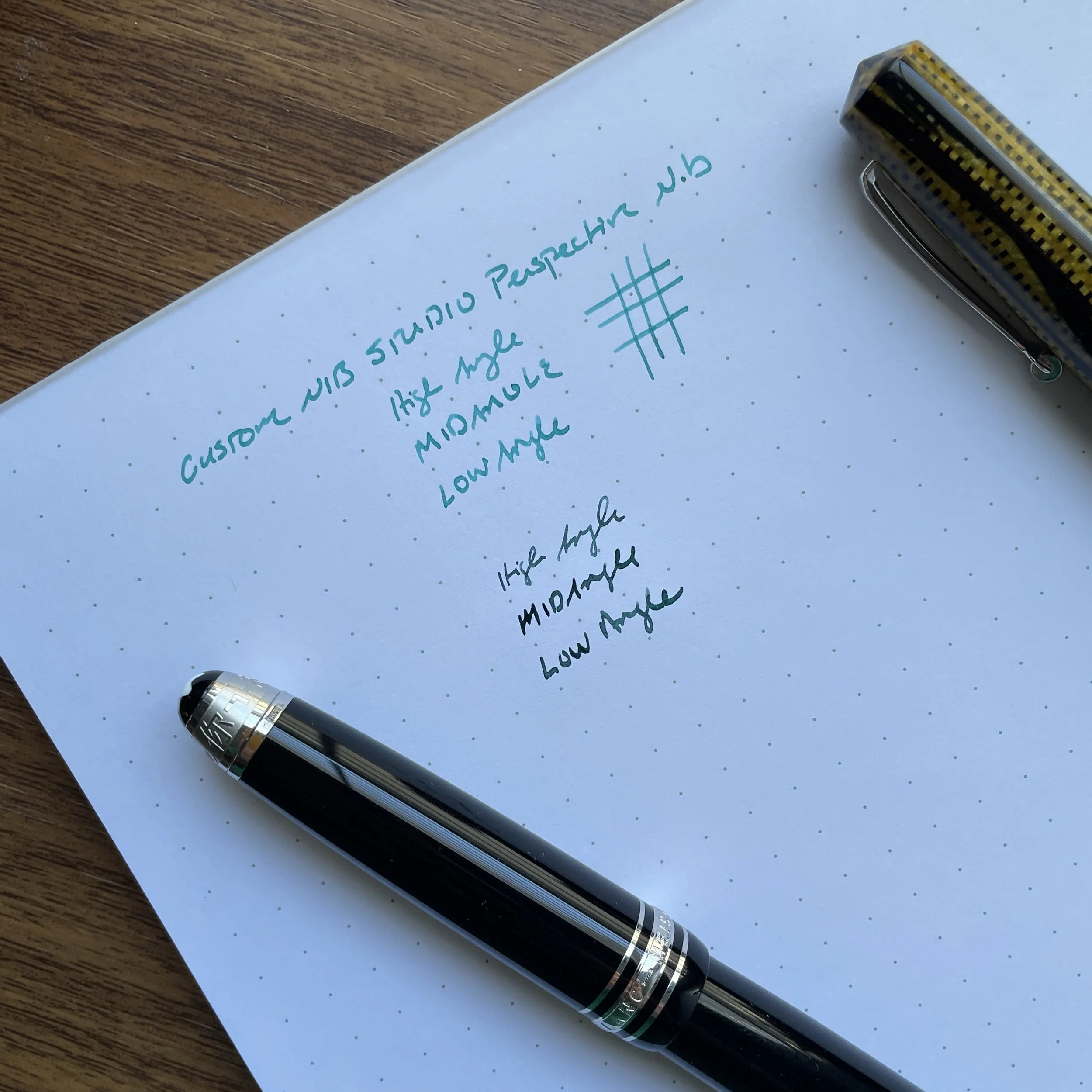 Back in September at the San Francisco Pen Show, I left a handful of pens with Gena at Custom Nib Studio for modification. Just before the Arkansas Pen Show, I received my pens in the mail, including two to which Gena had added their “Perspective” grind that I love so much. Both of these grinds are just as good as the original I had added to my Pelikan M800 Stone Garden and reviewed last year. You’ll notice that both pens I’ve used for today’s ink reviews feature Perspective nibs, which I highly recommend to those who are looking for some of the line variation of an Architect without the sharp edges. Plus, you get the ability to change line width from EF to Medium by adjusting your writing angle!