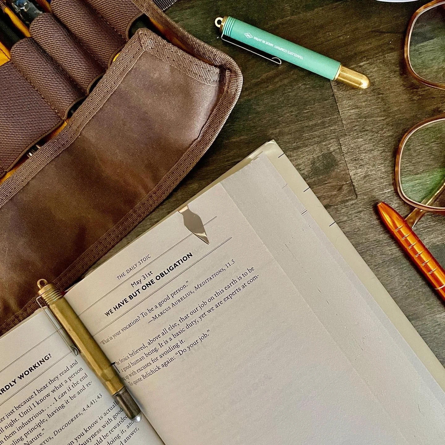 Traveler’s Company Brass Ballpoint Pens. My favorite everyday pocket ballpoint, which lives clipped to my Plotter Mini 5 (and to be honest, most of my other planners as well, given that I have like five of these pens). Though they last a long time, we also have the refills.
