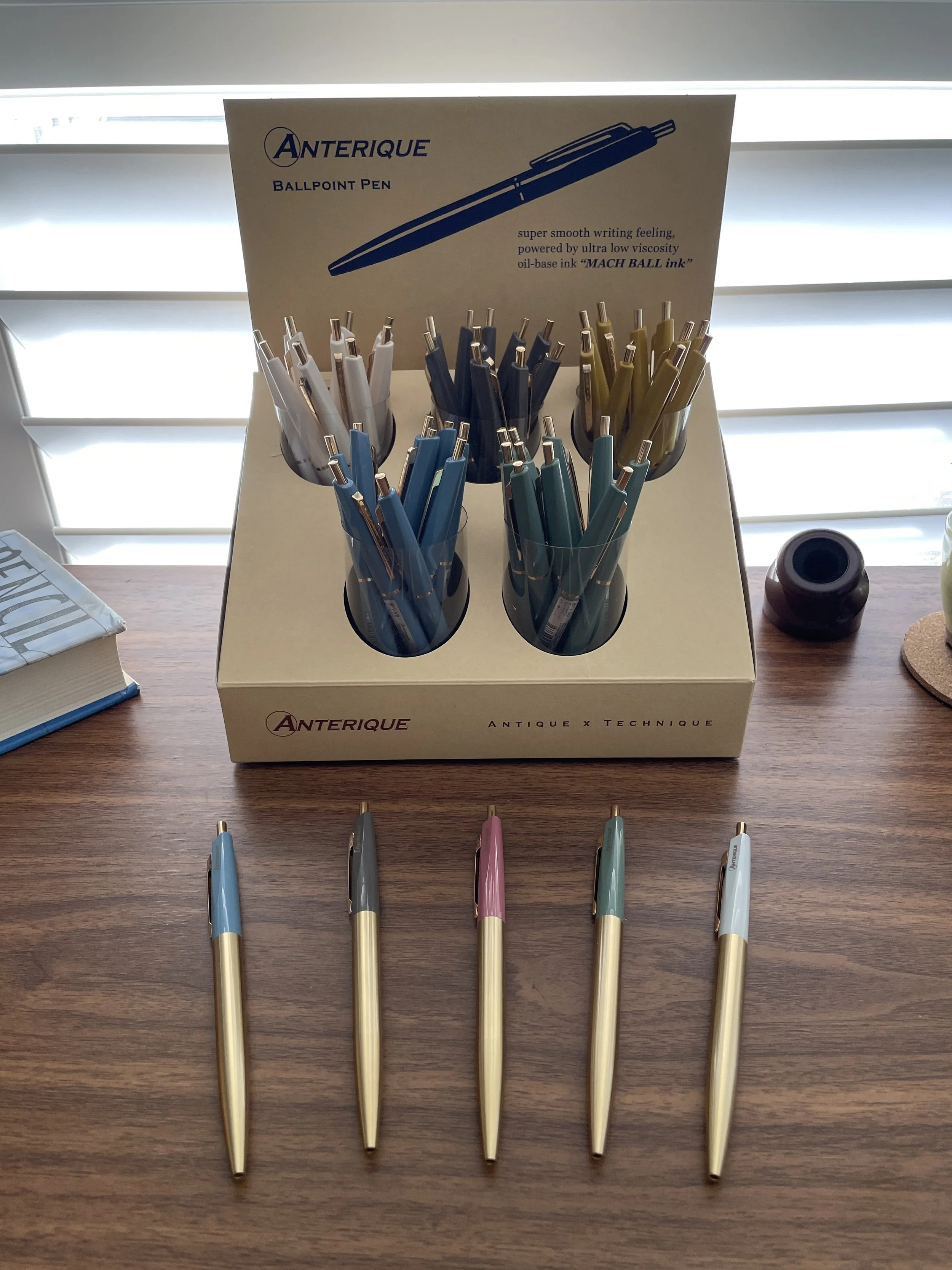 Following the announcements of new fountain pens, clutch pencils, and more, it’s ballpoint week here in the T.G.S. Curated Shop! A good ballpoint pen has become one of my core everyday writing tools, and as ballpoint ink technology continues to improve, you no longer have to deal with the stickiness and smearing of traditional oil-based ballpoint pens. We’ve recently added a line of pens from Anterique Stationers of Japan, which use an excellent .5mm “Mach Ball” low-viscosity refill and comes in two different formats: a vintage-inspired click-pen design, as well as an upgraded “Brass Edition” with a machined brass barrel. As an added bonus, the parts of the Anterique pens are interchangeable so you can create your own perfect color combination. Standard pens start at $5.50, with the Brass Edition priced at $29.