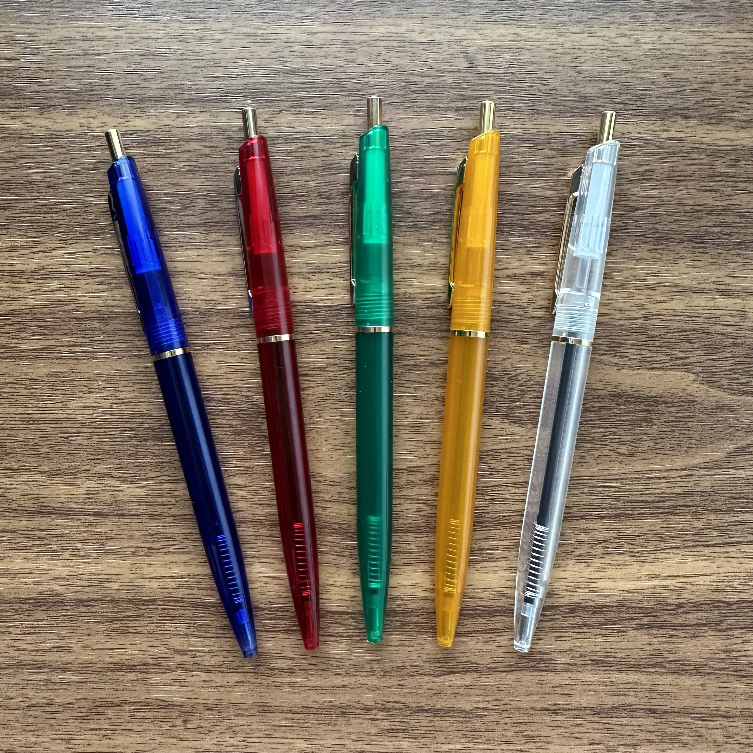 Anterique Ballpoints. These vintage-style ballpoint click pens pair vintage style with a modern, low-viscosity “Mach Ball” .5mm refill. We recently completed the lineup by adding 20+ colors, including demonstrators. Read more here.