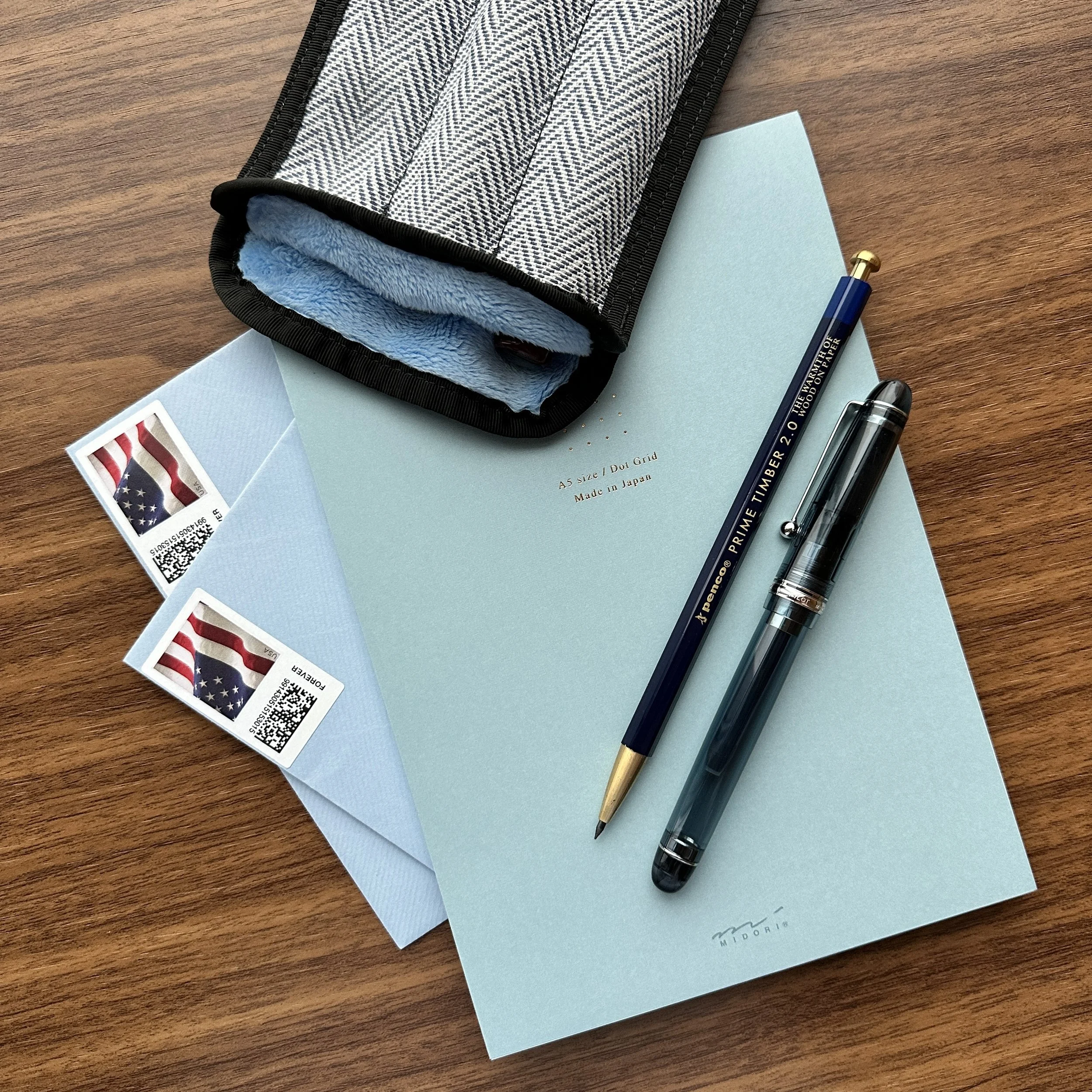 I’ve really been leaning hard into the blue stationery lately, especially blue paper. From left, two Patreon thank-you notes on the way courtesy of G. Lalo Vergé de France, and the recently arrived Midori Soft Color Pad.