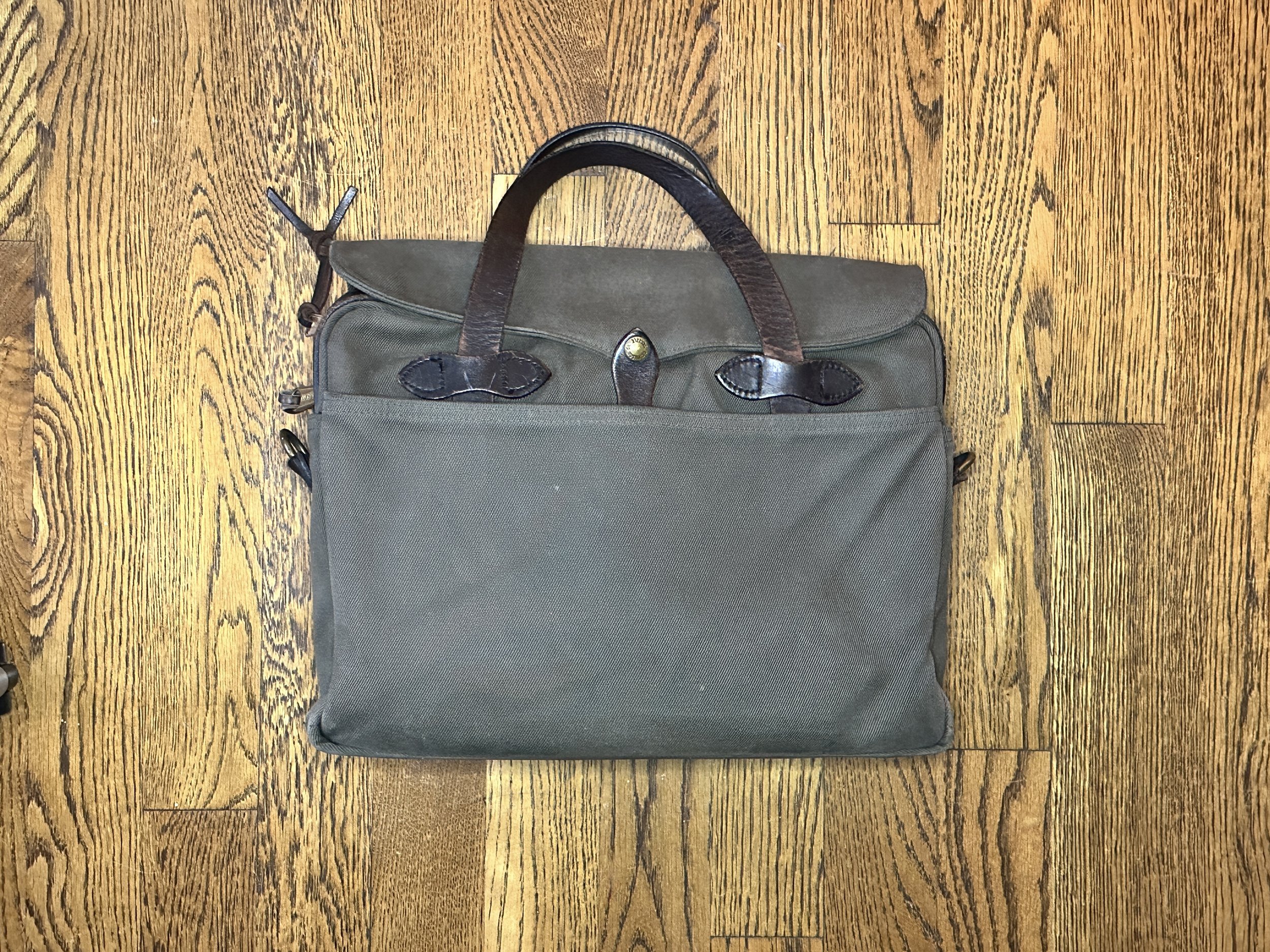 My go-to work carry remains my standard Filson briefcase in Otter Green. I love this bag not just because of its durability - it’s going on at least six years old - I find the interior well-organized and just big enough to fit all of my “daily needs” gear without becoming unwieldy. If I’m traveling for work or there’s a day when I need to carry larger physical files or other larger, heavier items like a bigger computer, I also have a Filson Zippered Tote.