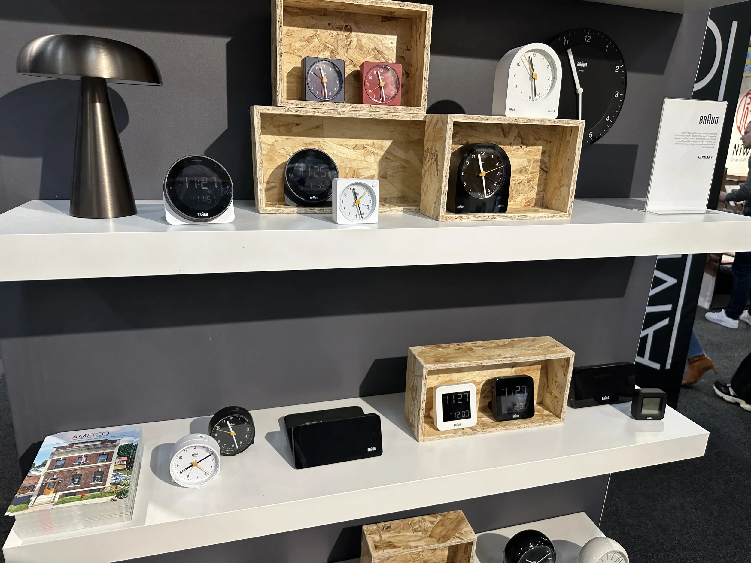 The emphasis on analog extended beyond pens. This display featured a huge selection of retro-style Braun alarm clocks.