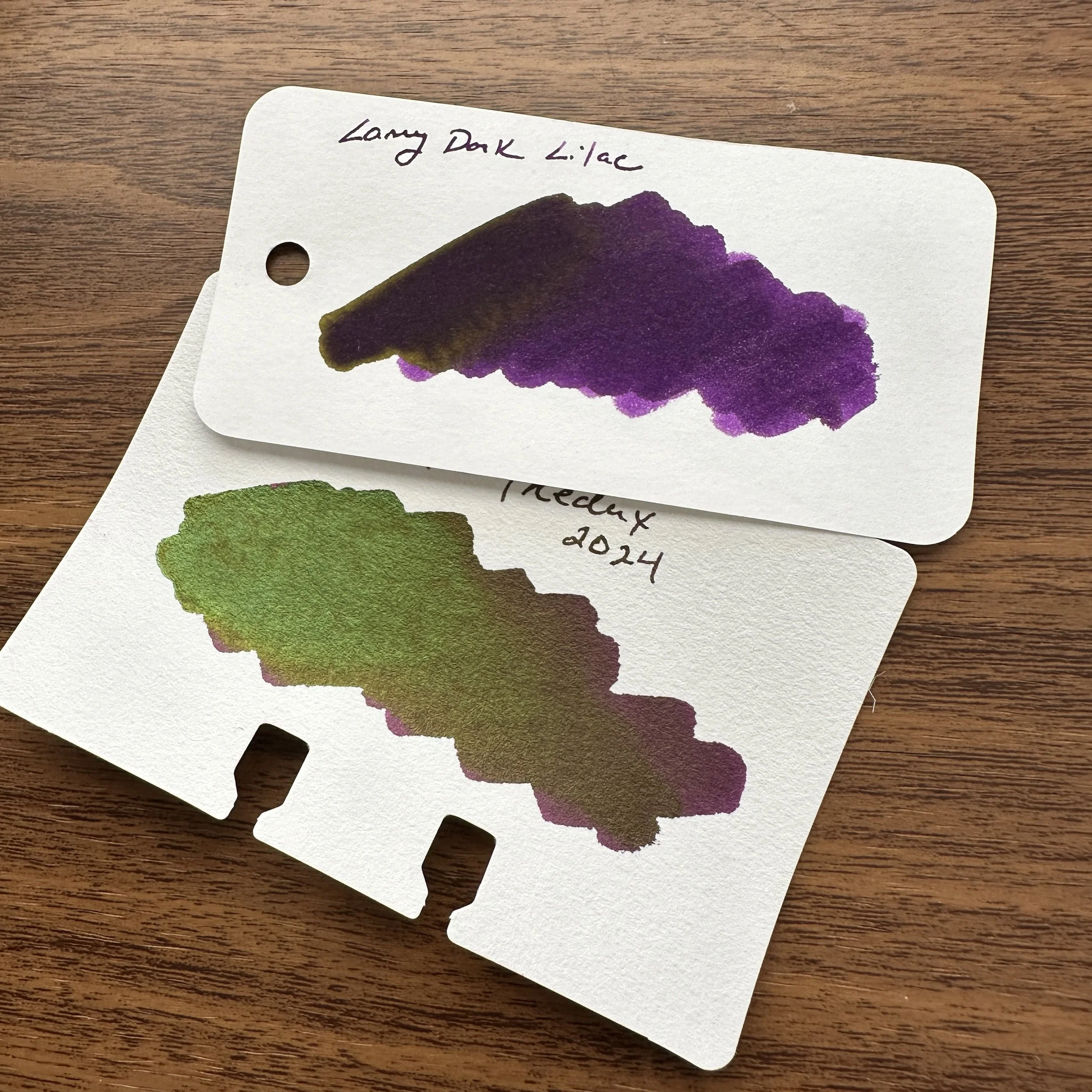 The new Dark Lilac is a much darker purple with reddish undertones - I’d describe it as a true purple-black with green sheen. Honestly, the new ink is not the former limited edition, but to me it lives up to its name and is an excellent purple ink standing on its own. If I’m going to go for a sheener, I love green sheen!