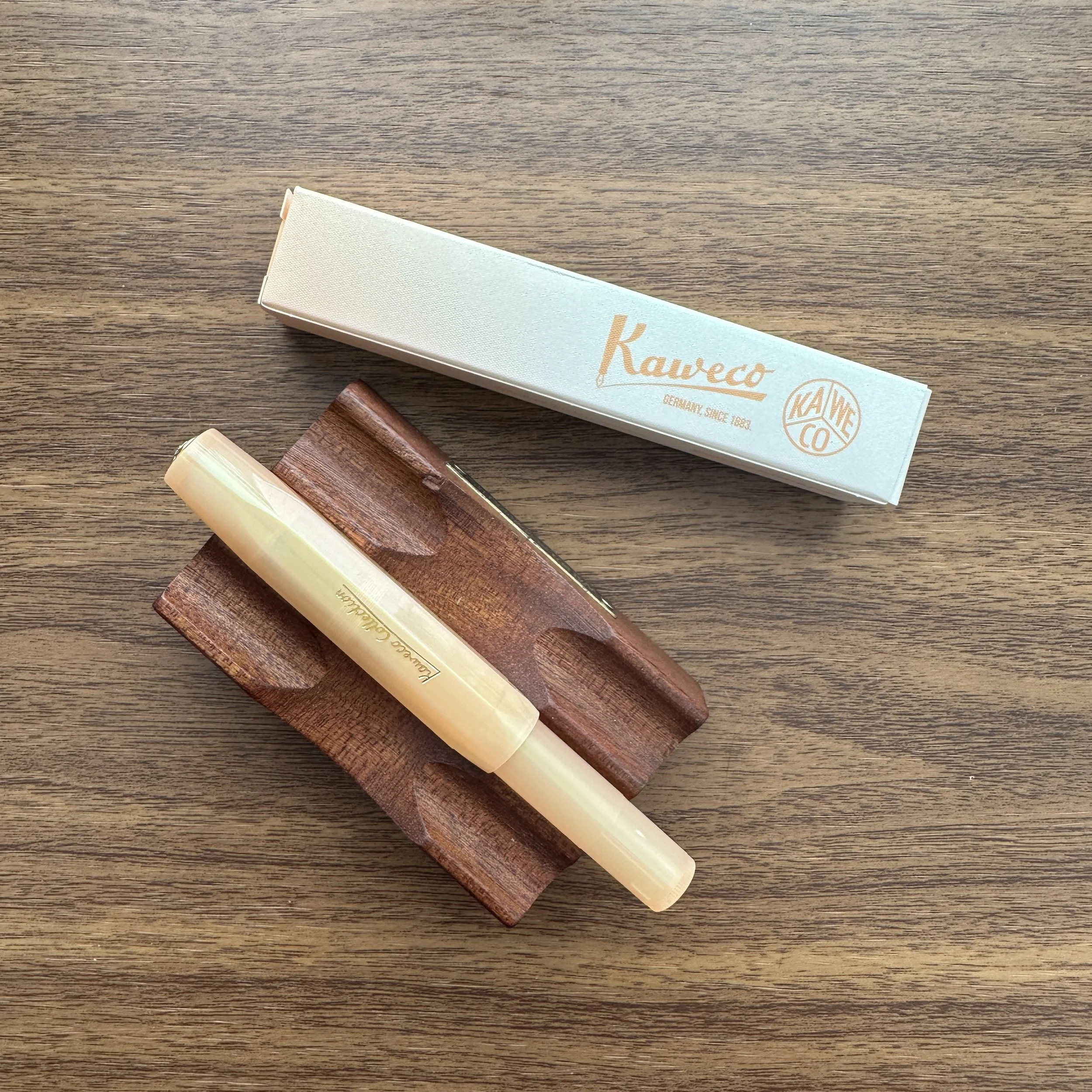 After a bit of a delay due to customs, our allocation of the 2024 Kaweco Collection Sport fountain pens has arrived! This year’s color is “Apricot Pearl,” a muted orange with a translucent, pearlescent finish. Each pen ships with a cartridge of Kaweco Sunset Orange ink. The Apricot Pearl Sports are currently available for purchase, in nib sizes EF through BB.
