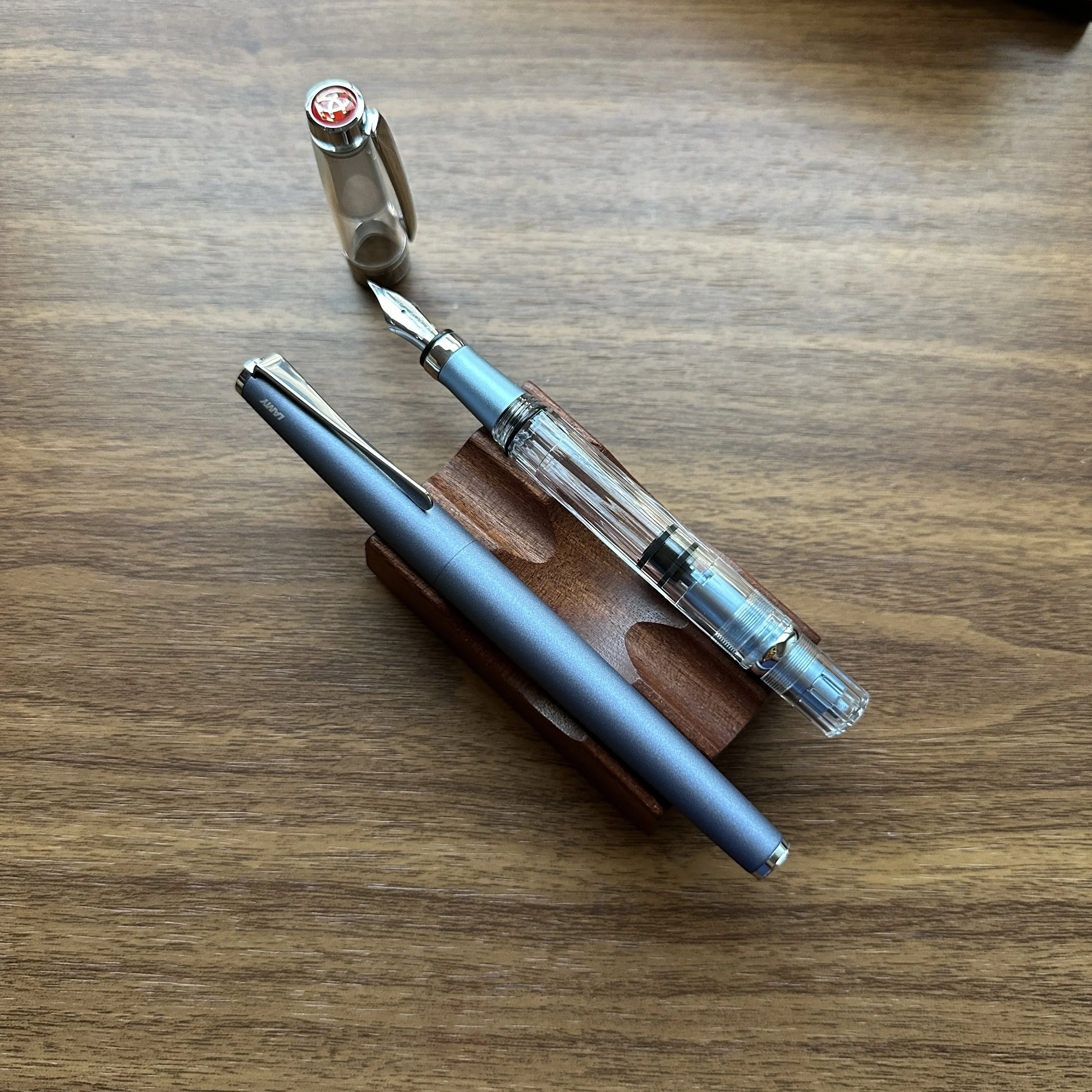 Ice blue, “Glacier”, “Iceberg,” whatever you want to call it; It’s one of the most underrated stationery color schemes out there. Shown here is the TWSBI Diamond 580 AL Iceberg alongside the Lamy Studio “Glacier”.