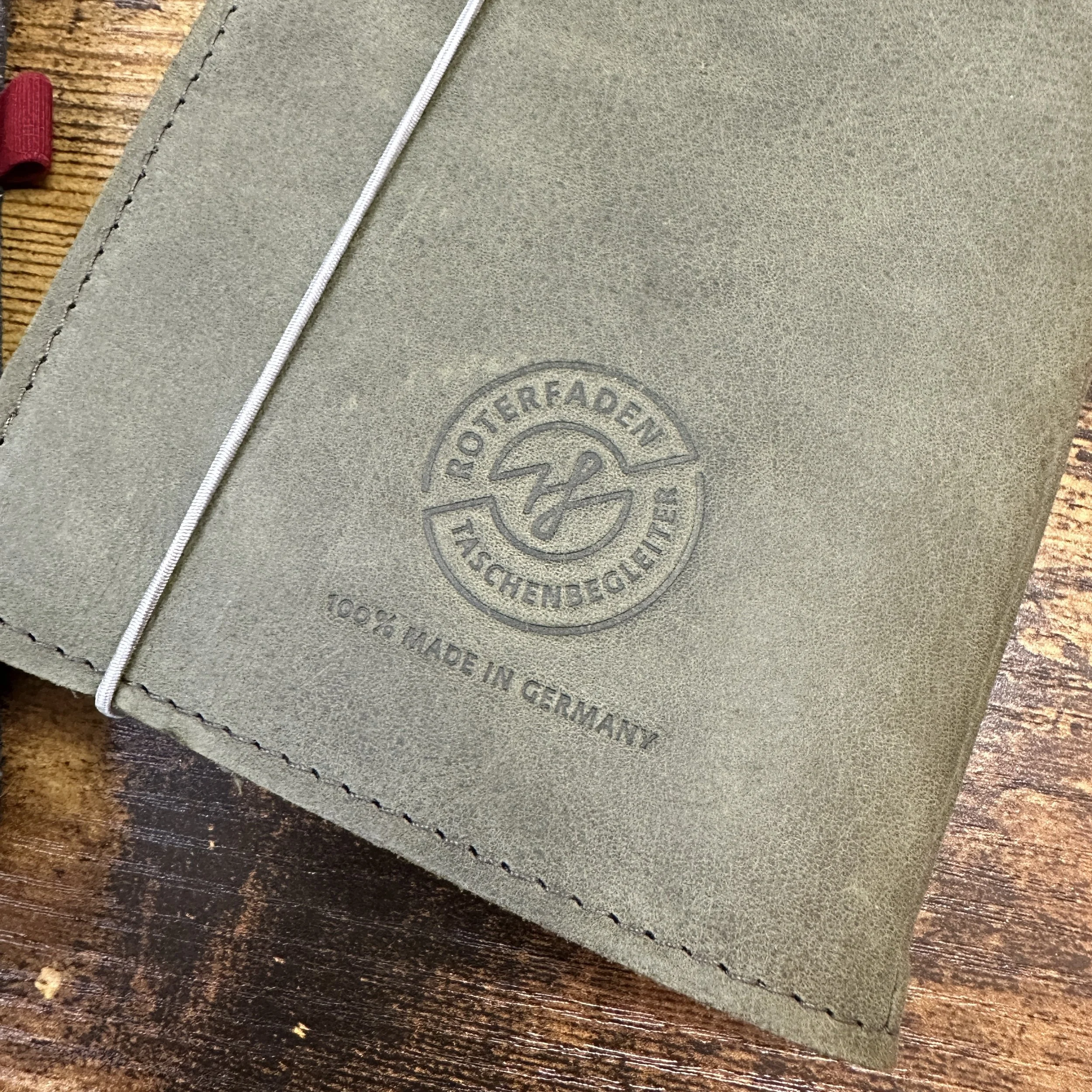 Roterfaden Taschenbegleiter TGS_25. Our A5 Slim Roterfaden Taschenbegleiter has cleared customs, with a fresh shipment arriving today! I have made the dark green version available for purchase, and we will have a lighter grey leather version available later this week. This will almost certainly be our last shipment of these before the holidays.
