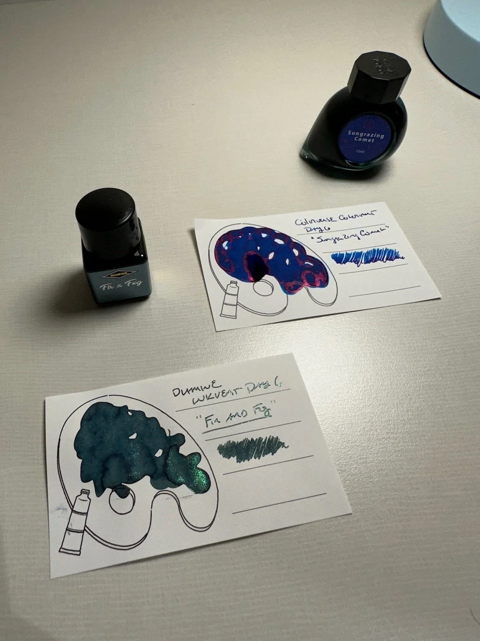 Day Six: Diamine Inkvent “Fir and Fog” and Colorverse Colorvent “Sungrazing Comet”