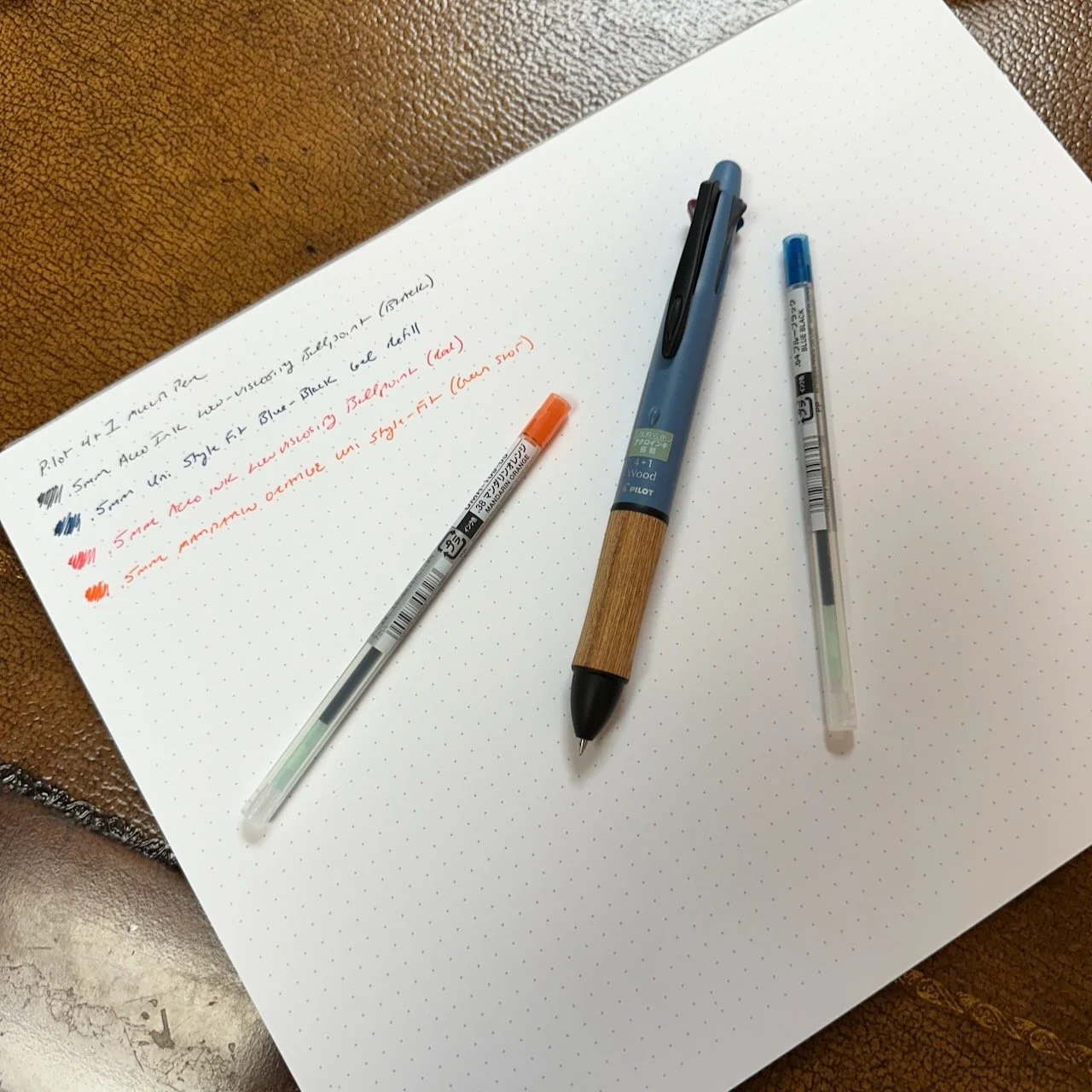You can get the Pilot 4+1 and Uni Style Fit Multi Pens in our shop, along with the refills for both. As noted above, the Pilot 4+1 ships with four .5mm Pilot BVRF-8 refills (black, blue, red, and green, plus a .5mm mechanical pencil). The Uni Style Fit bodies are sold separately from the refills, so you can assemble your own customized pen.