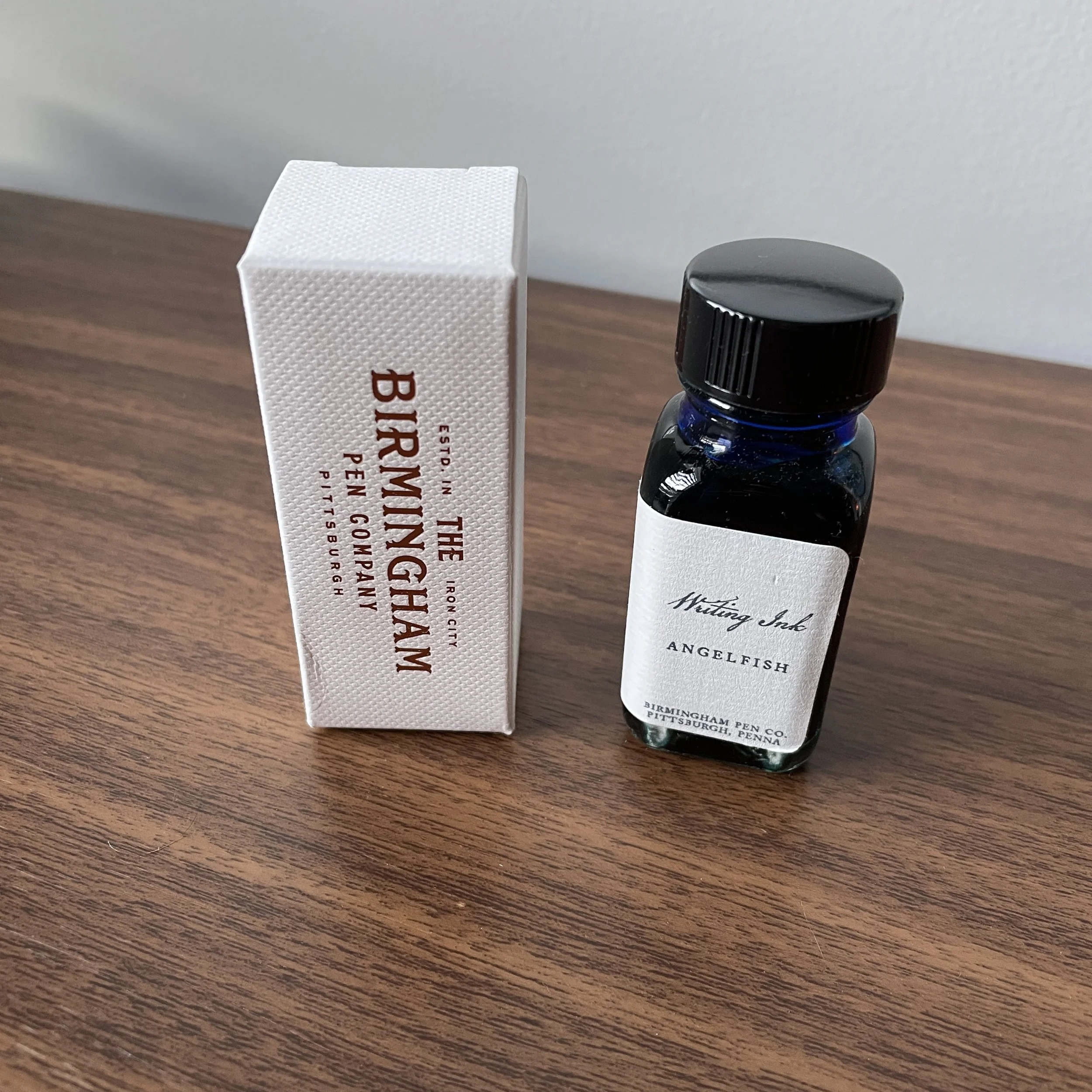 The Birmingham Pen Company is a small pen and ink manufacturer based in Pittsburgh, Pennsylvania, with a focus on small-batch fountain pens and hand-mixed and bottled ink. While I’ve not yet tried one of their pens, a few months ago I purchased several bottles of their inks, including a few from each of their different formulations. For those unfamiliar with the company, Birmingham makes their inks in a variety of formulas, ranging from the quick-drying “Swift” formula to the all-purpose “Crisp". The ink pictured here is from the “Rich” category, “built with a unique vehicle and dye combination to produce vibrant colors and intermittent sheen.”
