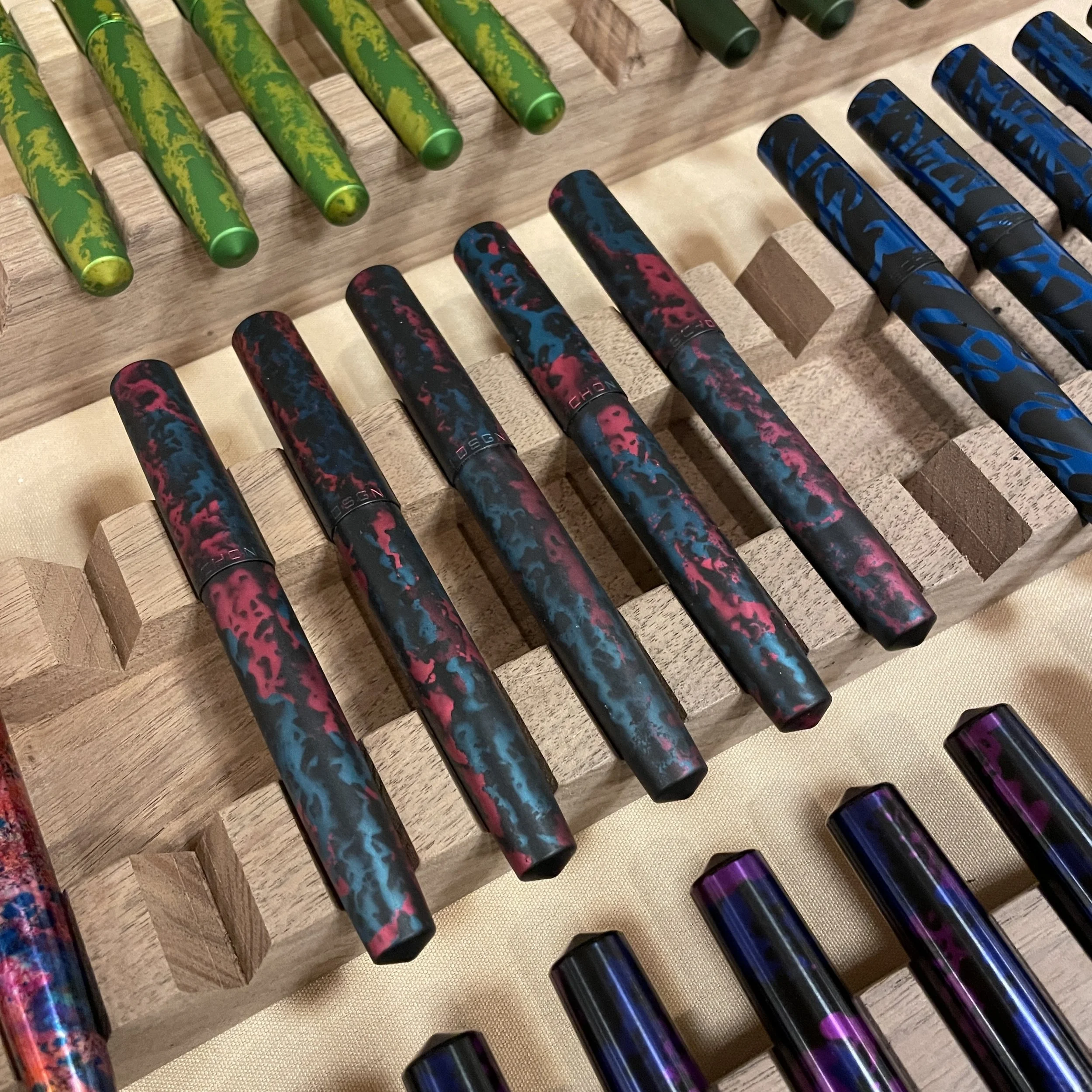 This particular pen show trip ended up being a mix of business and personal, meaning that I didn’t take a table and set up as a vendor, but I did meet with a couple of different makers and manufacturers on T.G.S.-related projects. Once those were taken care of, I was free to roam a bit, visit with friends, and pick up six pretty significant pens, including two customs I had been looking to add to my collection, two new releases to evaluate, and two pens (one semi-vintage) that I’ve long coveted but had never found “the right opportunity.” Sometimes those opportunities hit you all at once. :) Here we go: