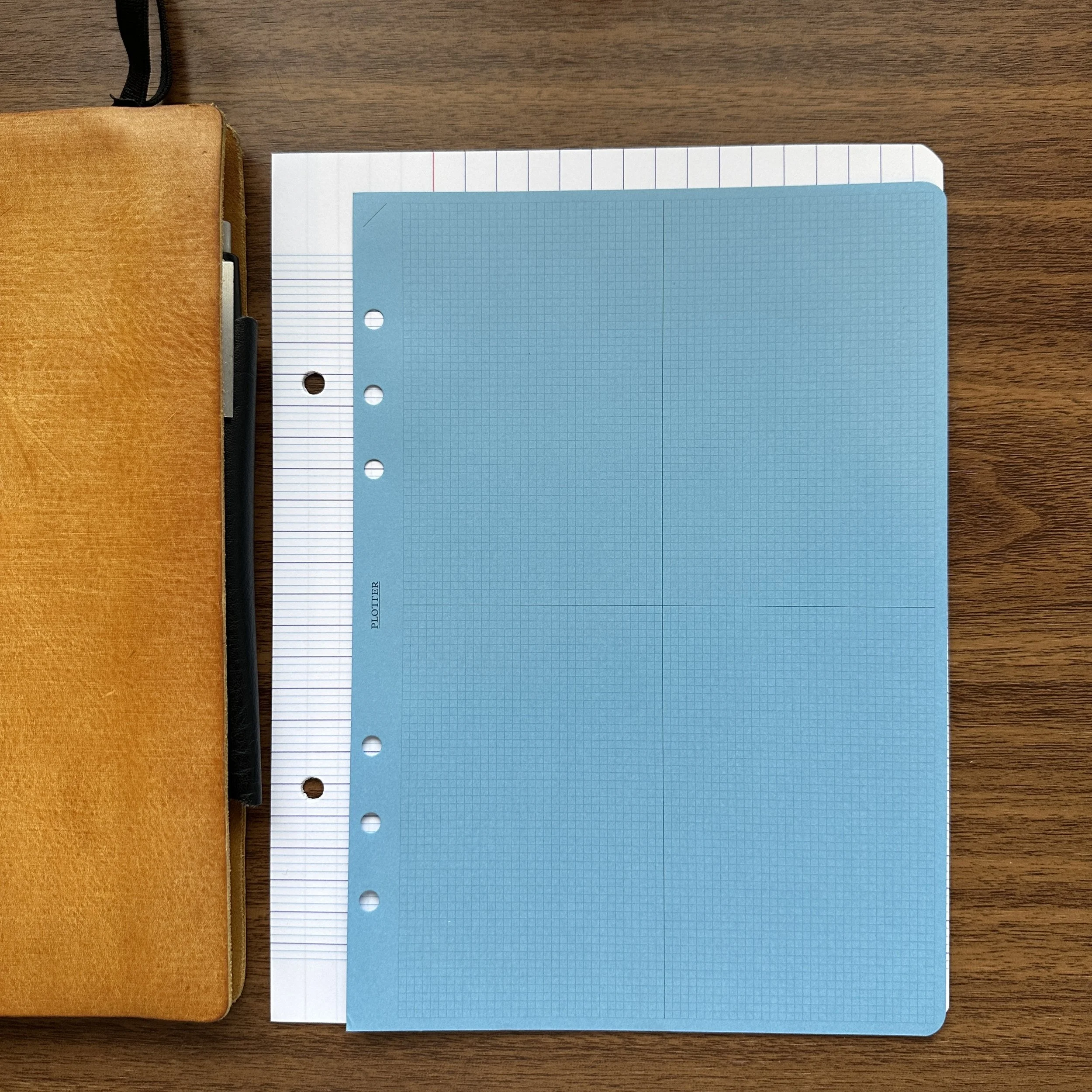 I used the Plotter blue sheet as a guide and trimmed these by hand with scissors because I’m snowed in and don’t have access to my office paper cutter. Trimming the top and left margins leaves a perfectly proportionate A5-sized Plotter refill!