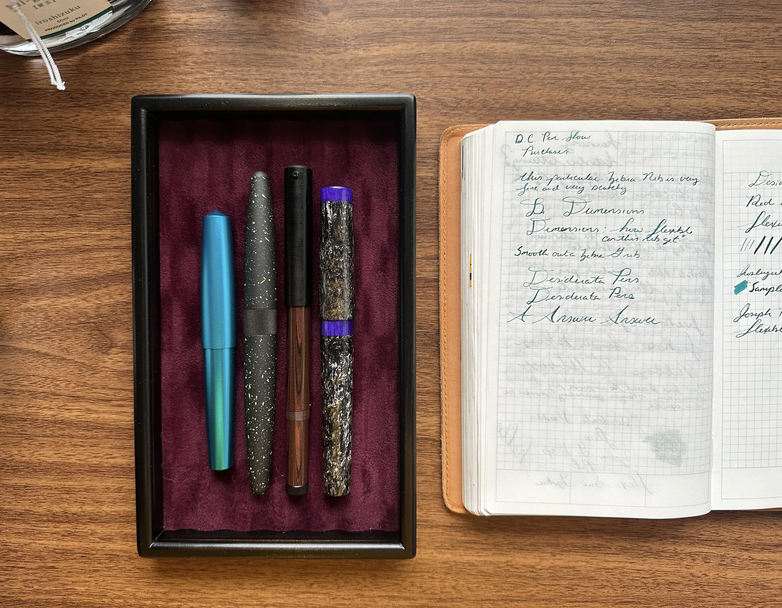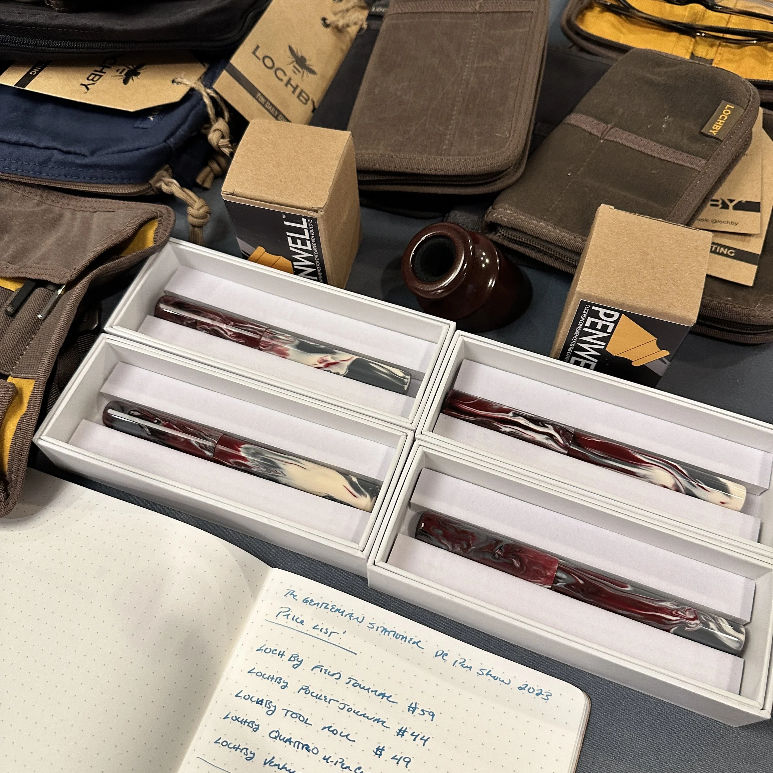 I’ve enjoyed spending time with the NFP Design product line since first having the opportunity to meet them at the D.C. Pen Show this past August. In addition to the “Tile” 2-pen box shown here, NFP Design offers a wide range of different storage options, including some beautiful lacquered boxes in various sizes. (I see a “Blok11” in my future as soon as the orange or yellow color options come back in stock.) Currently, NFP Design sells directly through their online shop, and I believe our friends at Vanness Pens have certain of their cases in stock as well, though they may not be listed on the site quite yet. I spent most of the Dallas Pen Show behind their table working with the “Blok” series, so inquire directly at Vanness if you are interested.