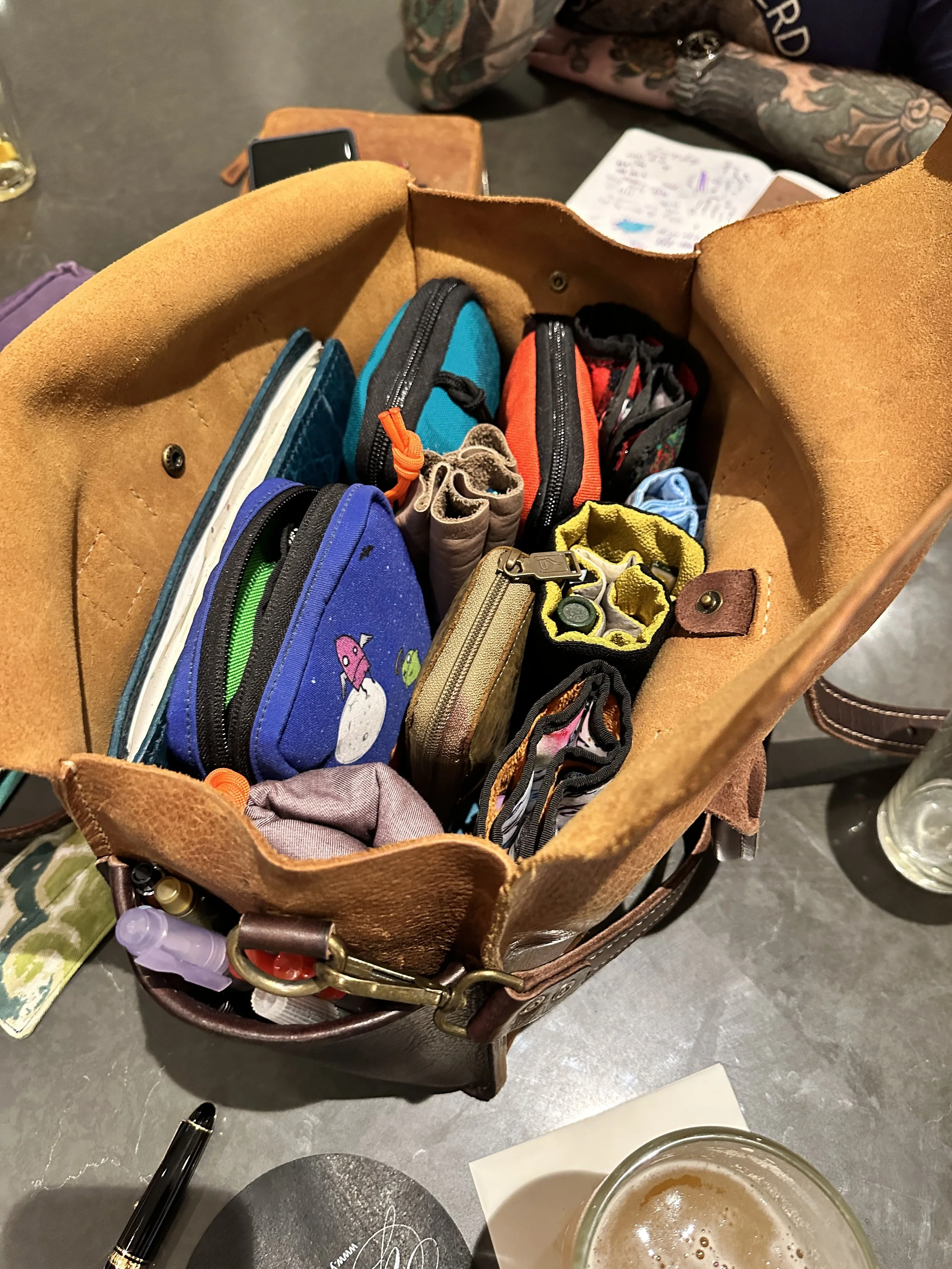 The NFP Design Tile case measures approximately 8” x 3.5”, so it’s fairly compact and doesn’t take up much room. Shown here next to a Rickshaw Bagworks 6-pen case for scale.
