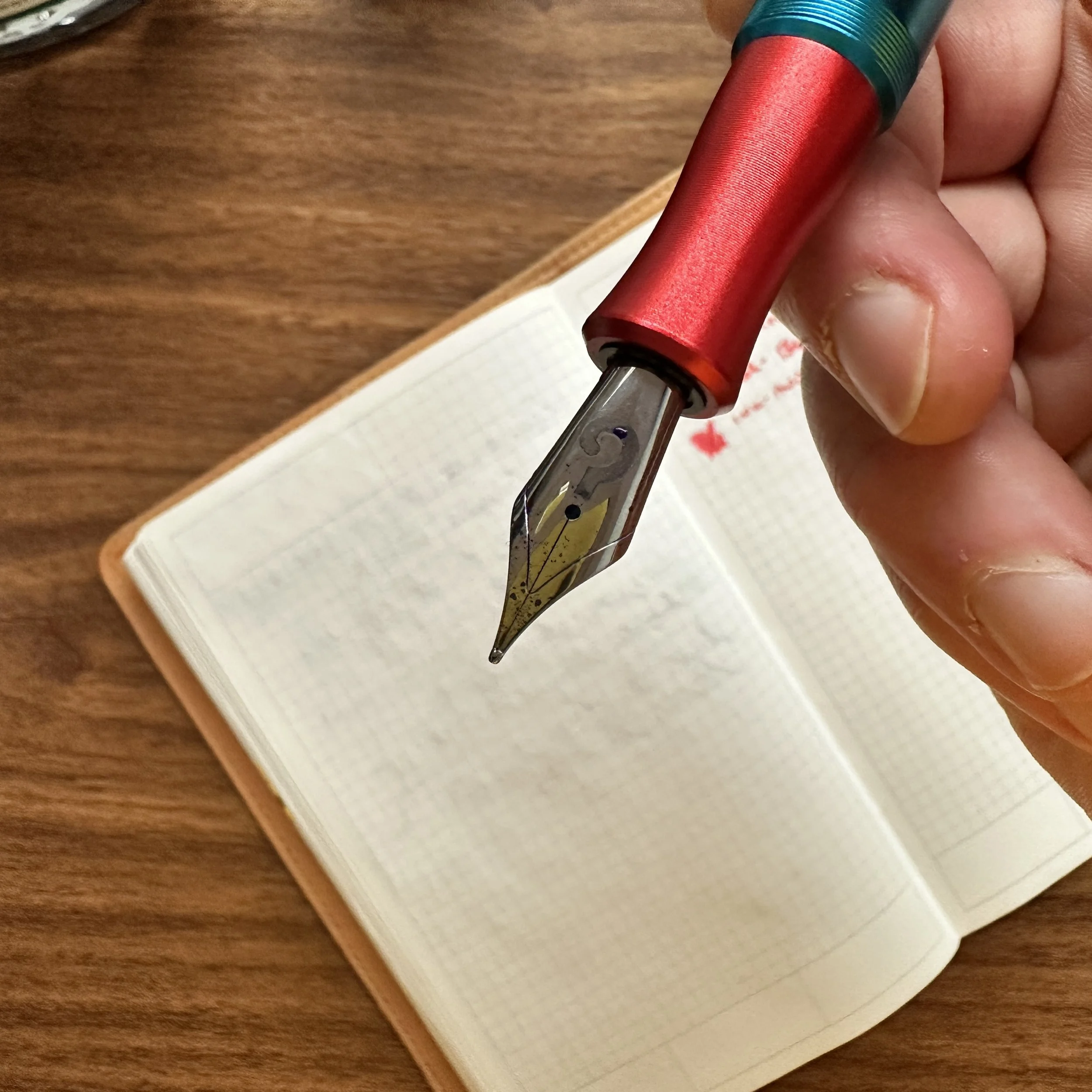 The slots in the NFP Design cases are large, and will accommodate most pens. The two shown here are the TWSBI Kai fountain pen (which is a fairly thick piston filler) and a TWSBI ECO-T in Rosso. The pen slots are soft, and the inside of the lid features foam padding to protect your pens if you need to transport them in the case.