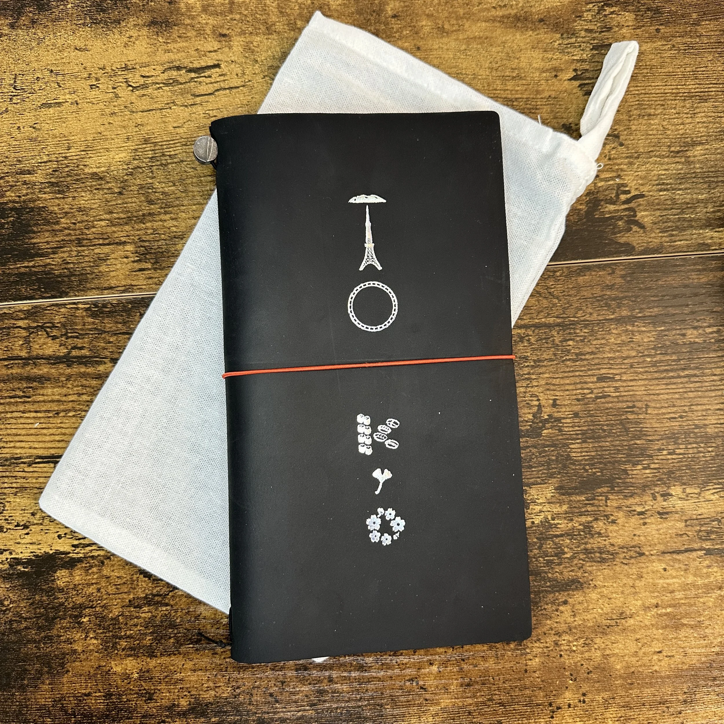 1. Tokyo Limited Edition Traveler’s Notebook. Featuring a black standard cover adorned with symbols of Tokyo, this is a gorgeous edition that comes with two elastic bands: one in standard black and one in a sakura pink. Guess which one I went for!