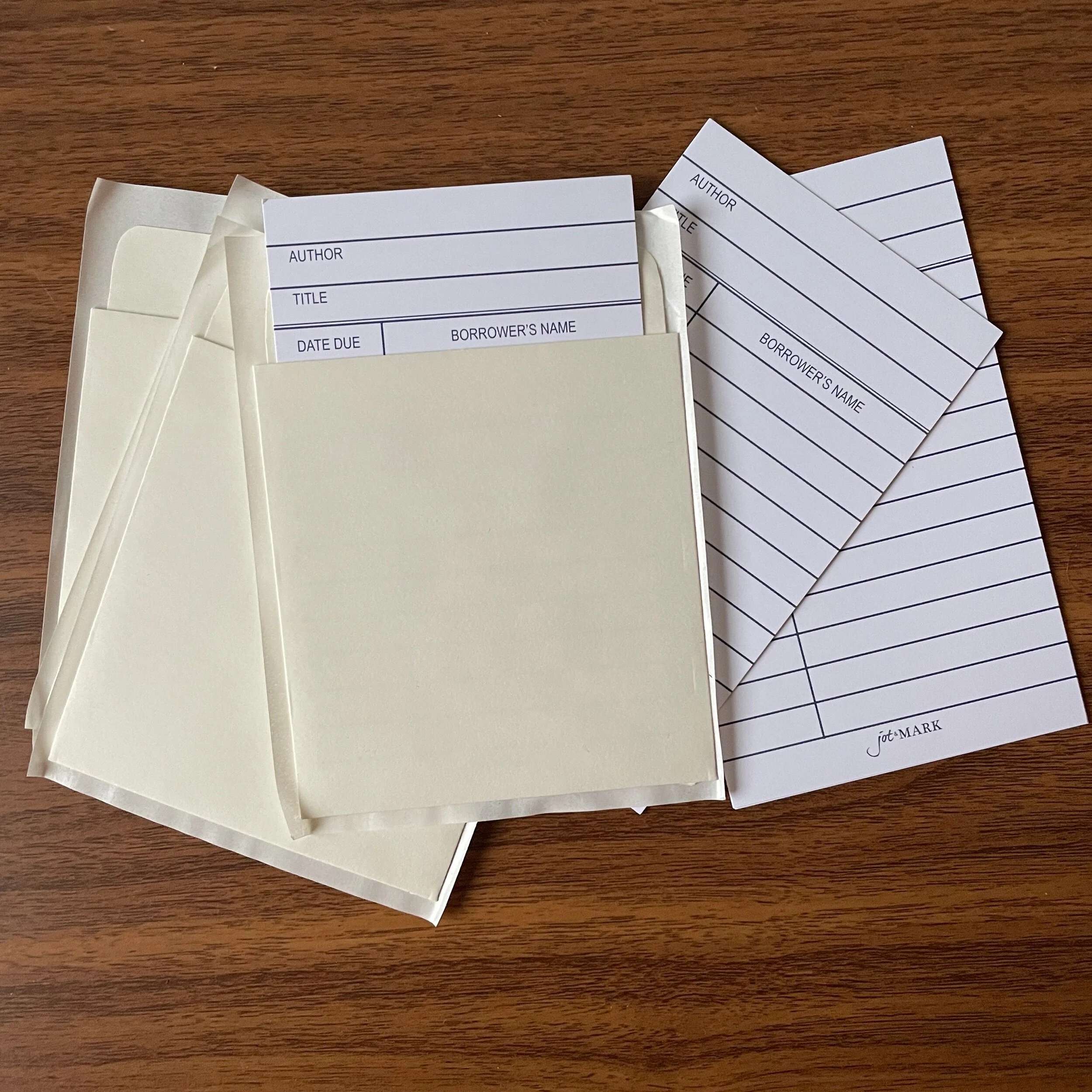 I don’t recall exactly where I picked this tip up, but sometime during 2020 I started sticking “library pockets” in the back of my books, that I would use to hold index cards for notetaking while I was traveling or reading. I’d later transcribe my notes from the notecards into my commonplace book. The habit has stuck (especially for books I can’t or don’t want to annotate or mark up), but I WAY over-purchased library pockets, and accidentally ordered more than a hundred of them. I don’t want to just throw them out, so I’m giving them away. If you order a notebook from the Curated Shop (hopefully for commonplacing but it’s not necessary), I’ll throw in a couple of these pockets, free of charge. The promotion will last until I’ve exhausted my excess supply. (Just to be clear, you’ll receive two pockets per person, per order, not two pockets per notebook.)