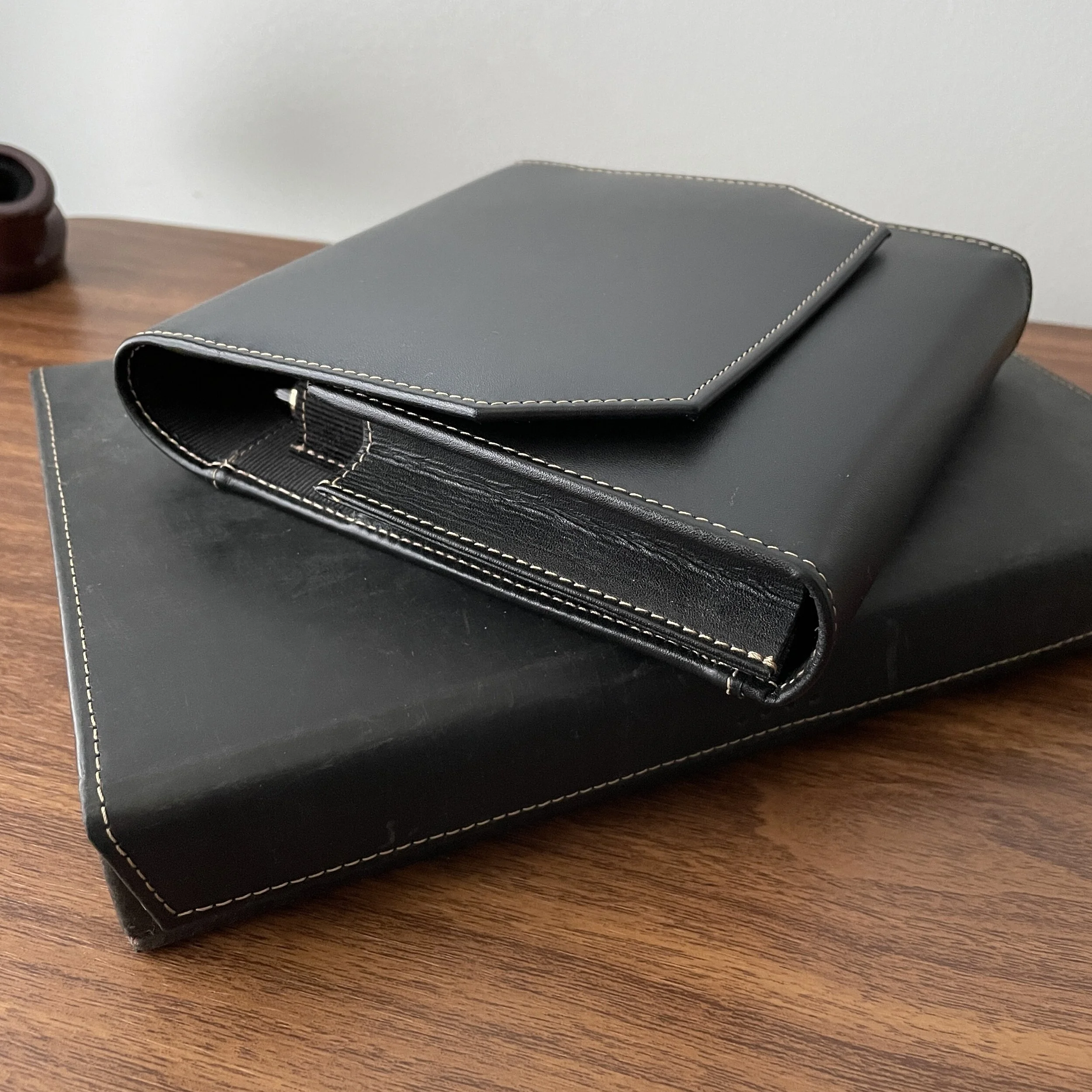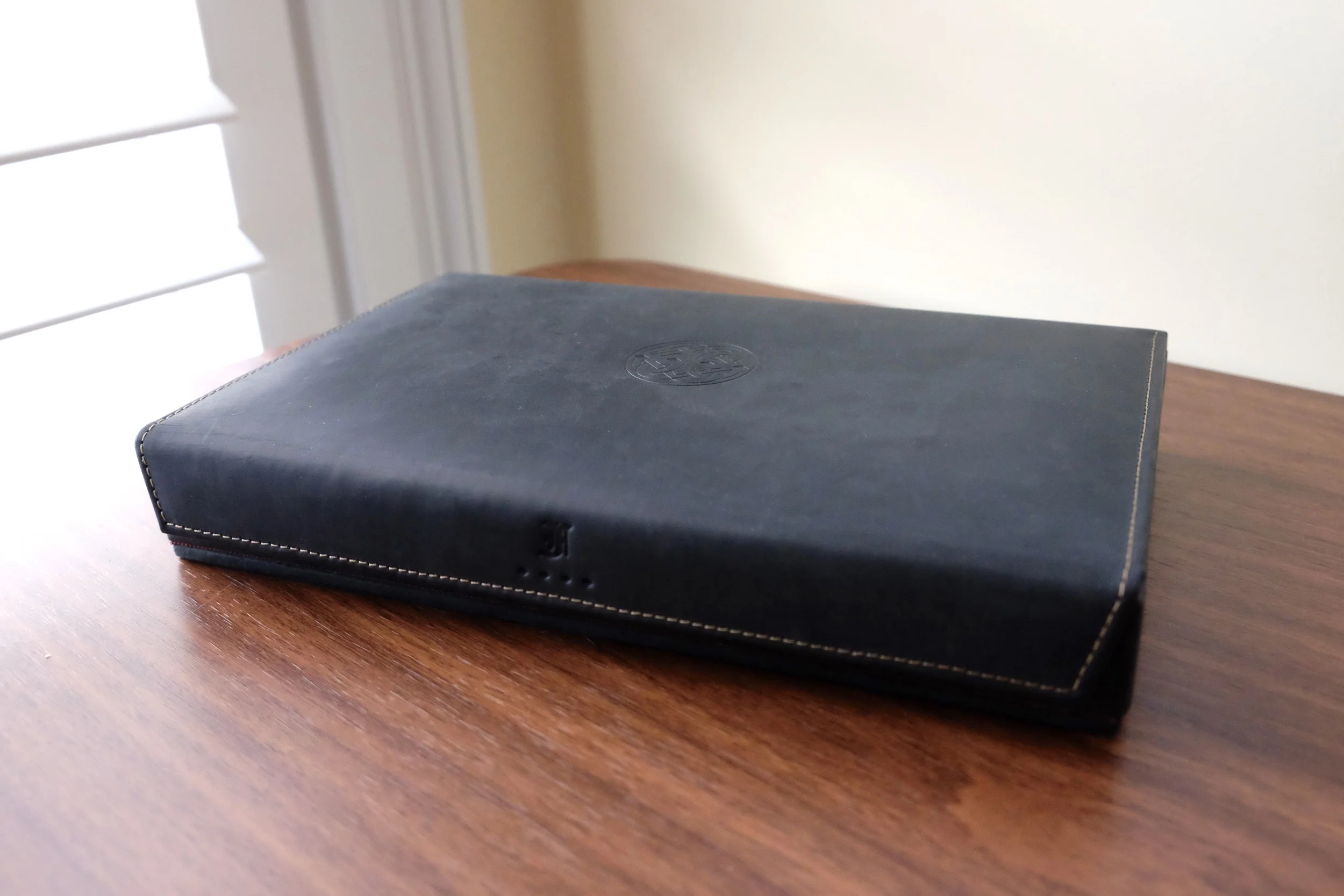 The “Penvelope” gets its name from the clutch or envelope-like design. The interior of the Penvelope Six features six fabric-lined pen loops that will hold pens as large as an Opus 88 Omar or a Montblanc 149. (Smaller pens still feel secure in the Penvelope, but if you don’t like the idea of them moving around you can clip them to the slot.) The fold-over magnetic closure isn’t especially tight, but I’ve not had any serious issues with it coming open, and it’s not as if you’ll want to transport this pen case - or any case containing fountain pens, for that matter - in a bag where it can easily flip upside down. This is a case more suited to use in a briefcase, purse, or secure backpack slot, and it slips into a briefcase particularly well.