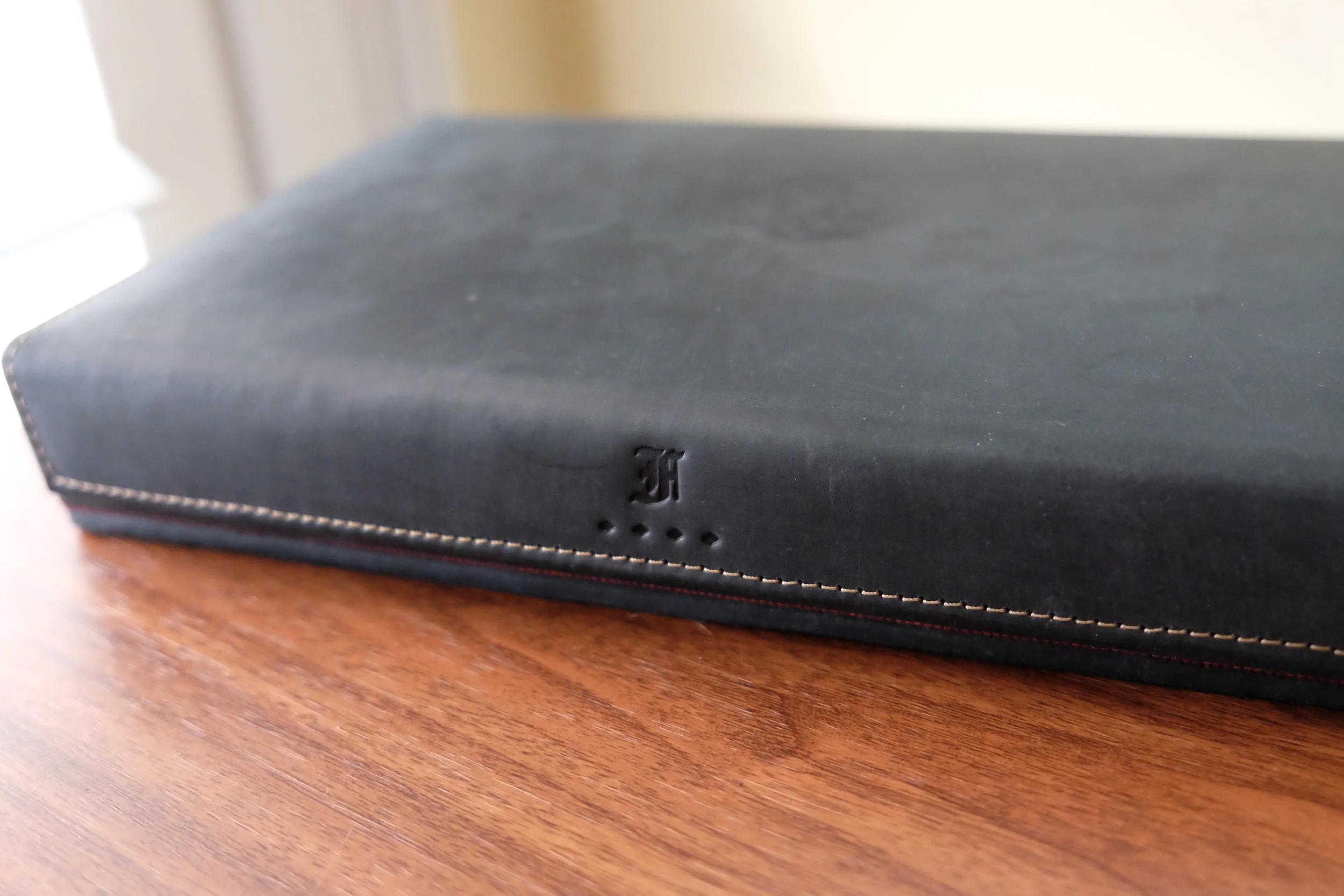 The Covered Pen Tray is available in the same maroon, black, and brown color options as Franklin-Christoph's other leather goods.  Recently, Franklin-Christoph changed their leather, so instead of the matte "boot leather" pictured in this review, the new Covered Pen Trays are made from "FxCel oil tanned leather," which the company says offers a "smoother high quality finish".  I haven't seen the new leather in person, but will definitely be checking it out next month at the Washington, D.C. Pen Show.