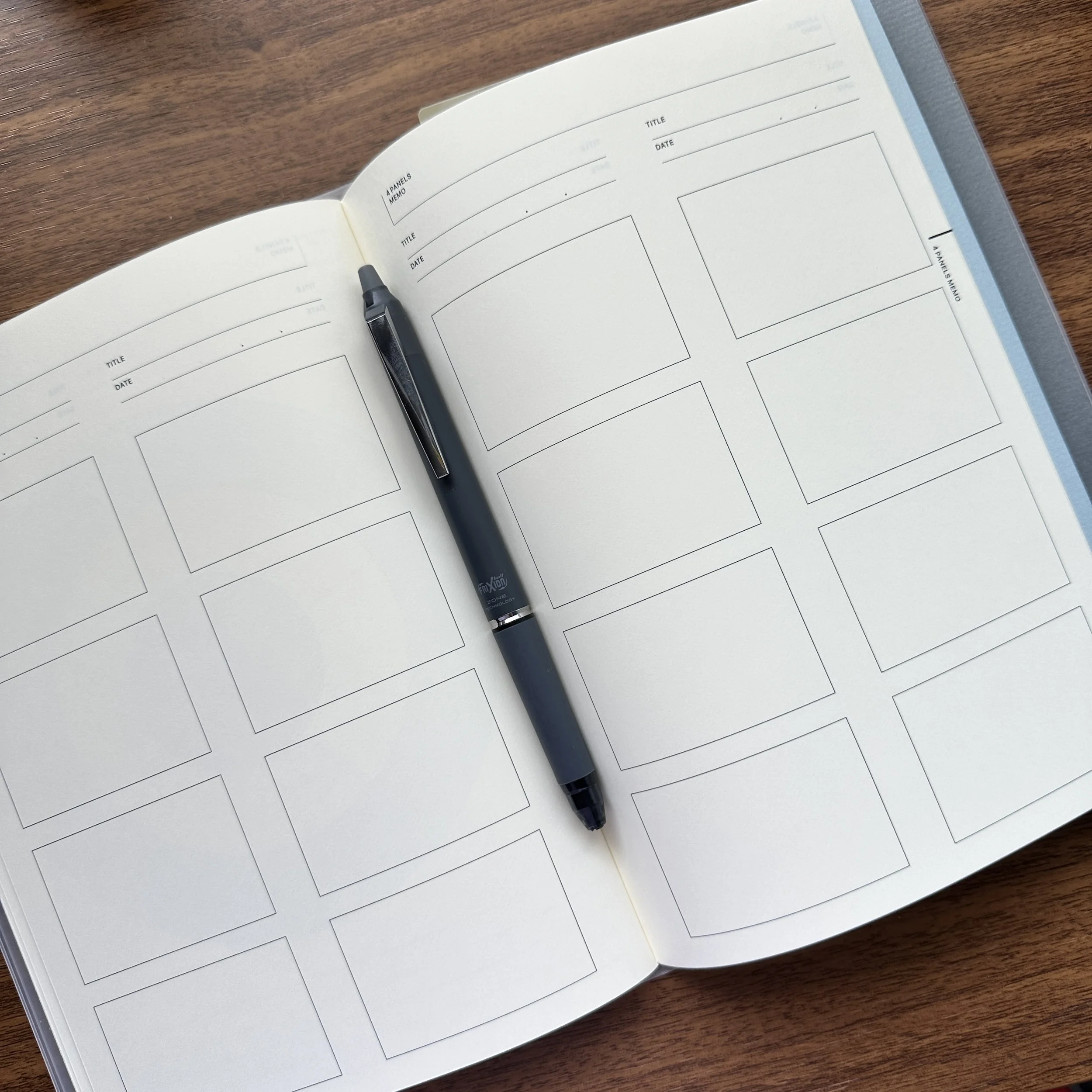 I’ve enjoyed using the Laconic notebooks (as well as the add-on accessories like the bookmarks), and have mainly been using them with Pilot Frixion gel pens in the .4mm and .5mm tip sizes. While I would compare the Laconic paper to something like that featured in the Kokuyo Jibun Techo Planner (i.e., it works perfectly well with low-maintenance fountain pen inks in a fine or extra-fine nib), these erasable gel pens lend themselves quite well to writing in planners and charts, given that you may want to (1) write very small in the way that a micro-tipped gel pen can do; and (2) erase and change information that you may be “logging.” You can purchase the .5mm Frixion pens at most big box (or even grocery) stores, and there are plenty of online retailers, including Jetpens or Amazon, that sell the .4mm needle-tip versions. The ink has come a long way in terms of legibility, and I’ve found the pens to work as advertised.